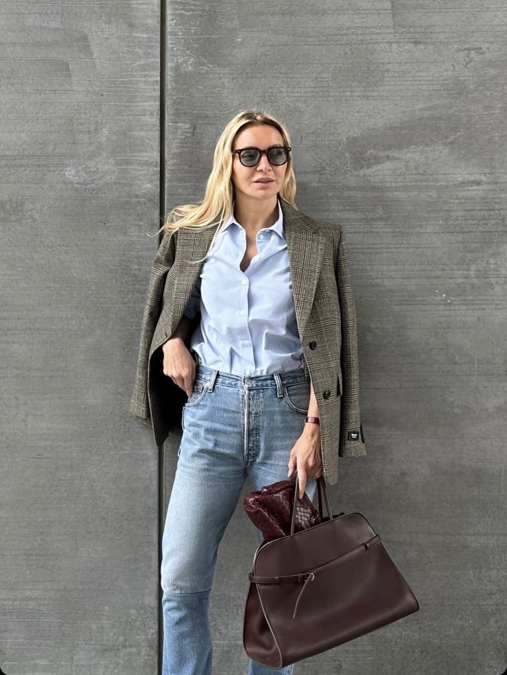 - Добавляйте структуру. Даже в повседневном образе должен быть хотя бы один элемент с четкой линией: пиджак, пальто или другое плечевое изделие.