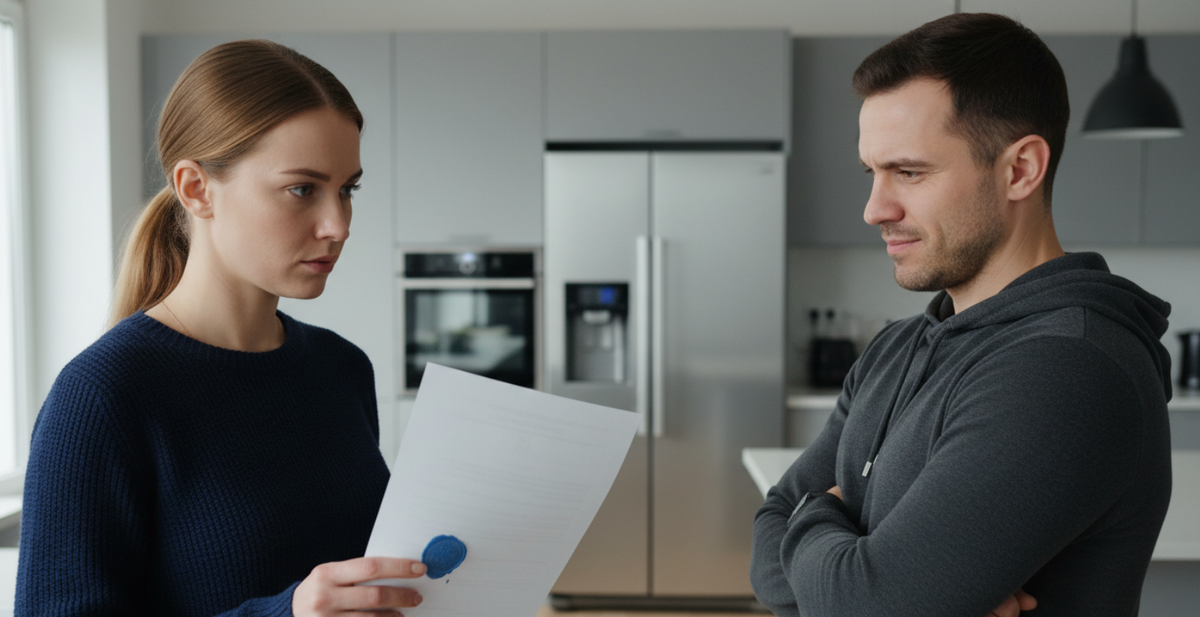 Муж нехотя оторвался от экрана телефона. Он посмотрел на бумагу, потом на жену, и на его лице появилось выражение крайнего недовольства. Он явно не ожидал, что его тайные дела раскроются так быстро.