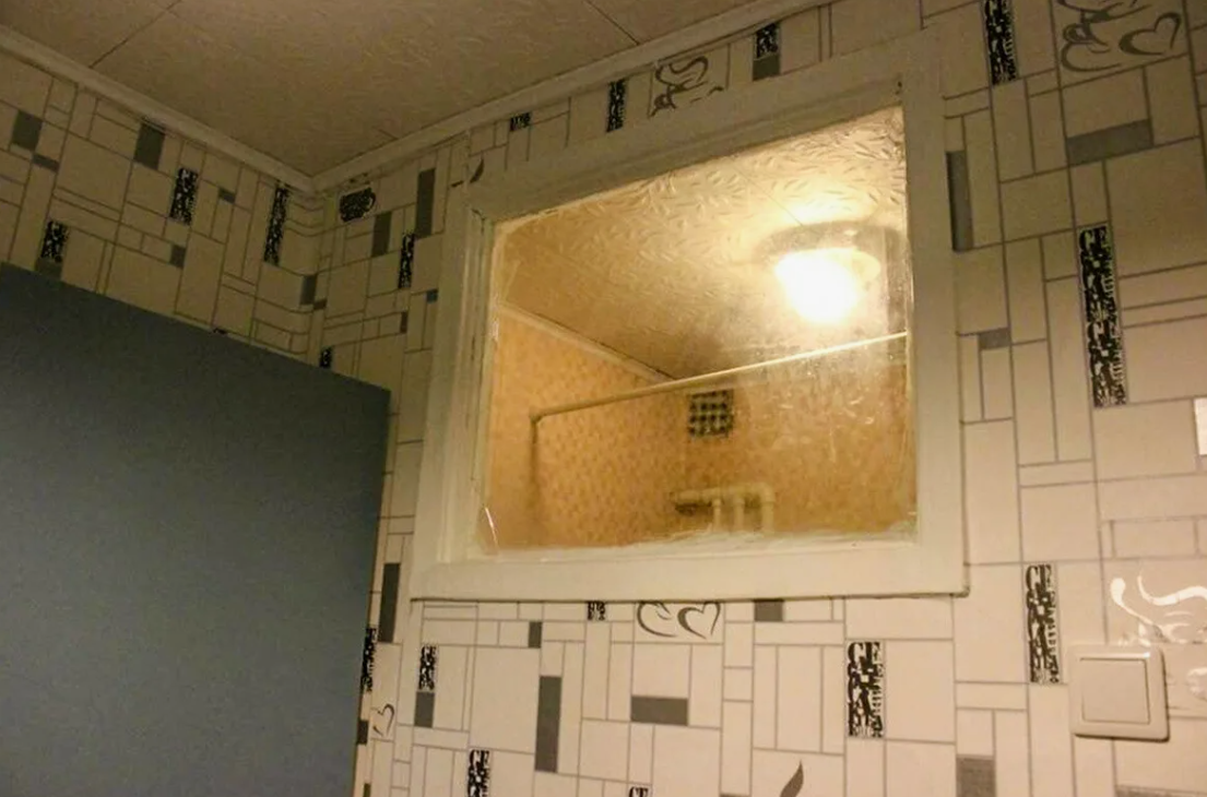 В старых пятиэтажных домах можно заметить необычную деталь: небольшое застеклённое окно между кухней и санузлом.