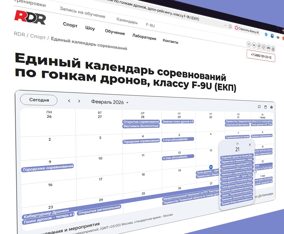 📅📅📅 Самый полный календарь соревнований на дронах в России. 👉👉👉 https://rdr.aero/calendar 👈👈👈 😎 В календарь вносятся как реальные гонки, так и кибертурниры, а также соревнования от RDR, ФАСР, ФГДР, Кванториумов, от других организаторов, различные локальные и корпоративные турниры, гонки на тинивупах, гонки на 5" и другие виды соревнований, где есть возможность полетать нашим пилотам. ✅ Следим за актуальностью календаря, корректируем переносы событий, обновления регламентов и другой информации. 👉👉👉 https://rdr.aero/calendar 👈👈👈 Удобный инструмент для планирования поездок на турниры и организации своих соревнований! 👍💯