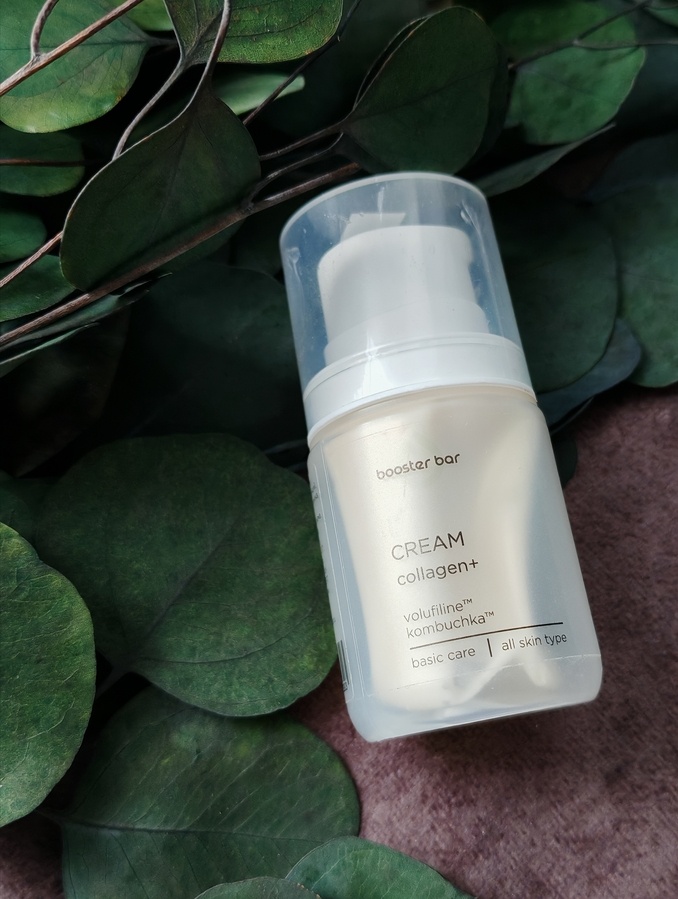 Привет! Сегодня хочу рассказать про универсальный крем-уход Коллаген+ для лица, шеи и век 3в1 от Boosterbar. Крем разработан, чтобы вернуть коже (которая стала суше, потеряла плотность и упругость) объём, бархатистость и внутренний ресурс сопротивляться возрастным изменениям. Крем находится в прозрачном флаконе, выполнено из качественного пластика. Оформление лаконичное. На обратной стороне есть информация о продукте. Вес 50мл. Страна производства — Россия. Срок годности после вскрытия 6 месяцев. Есть защита от вскрытия в виде брендированной наклейки. Дозатор помповый с поворотным механизмом, очень удобный. Он даёт возможность дозировать столько крема, сколько необходимо. Работает исправно, не плюётя, не протекает. Текстура у крема плотная, насыщенная, но не жирная. Продукт быстро впитывается, жирности и липкости не оставляет. Не создаёт ощущение парникового эффекта. Имеет своеобразный травянистый аромат. Заявление производителя: крем восстанавливает собственные механизмы упругости. В