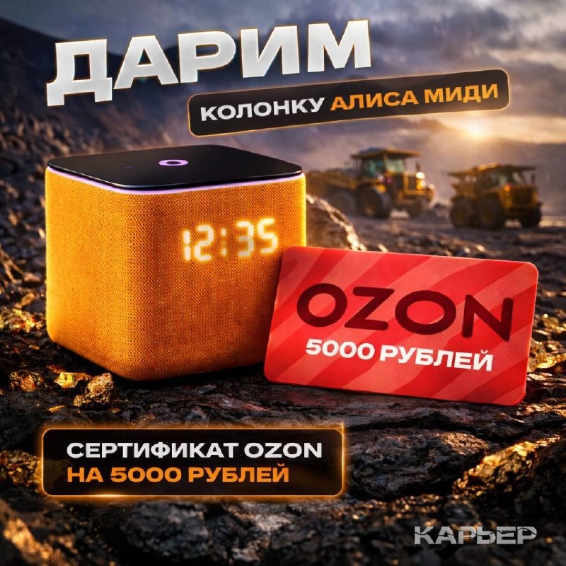 »🔥 Будет два победителя, которые получат: — Колонку Алиса Миди — Сертификат Озон на 5000 рублей Для участия нужно: ✔️быть подписчиком «Карьер»; ✔️перейти по ссылке и принять участие в розыгрыше. Итоги подведут 8 мая. Всем удачи! 🍀