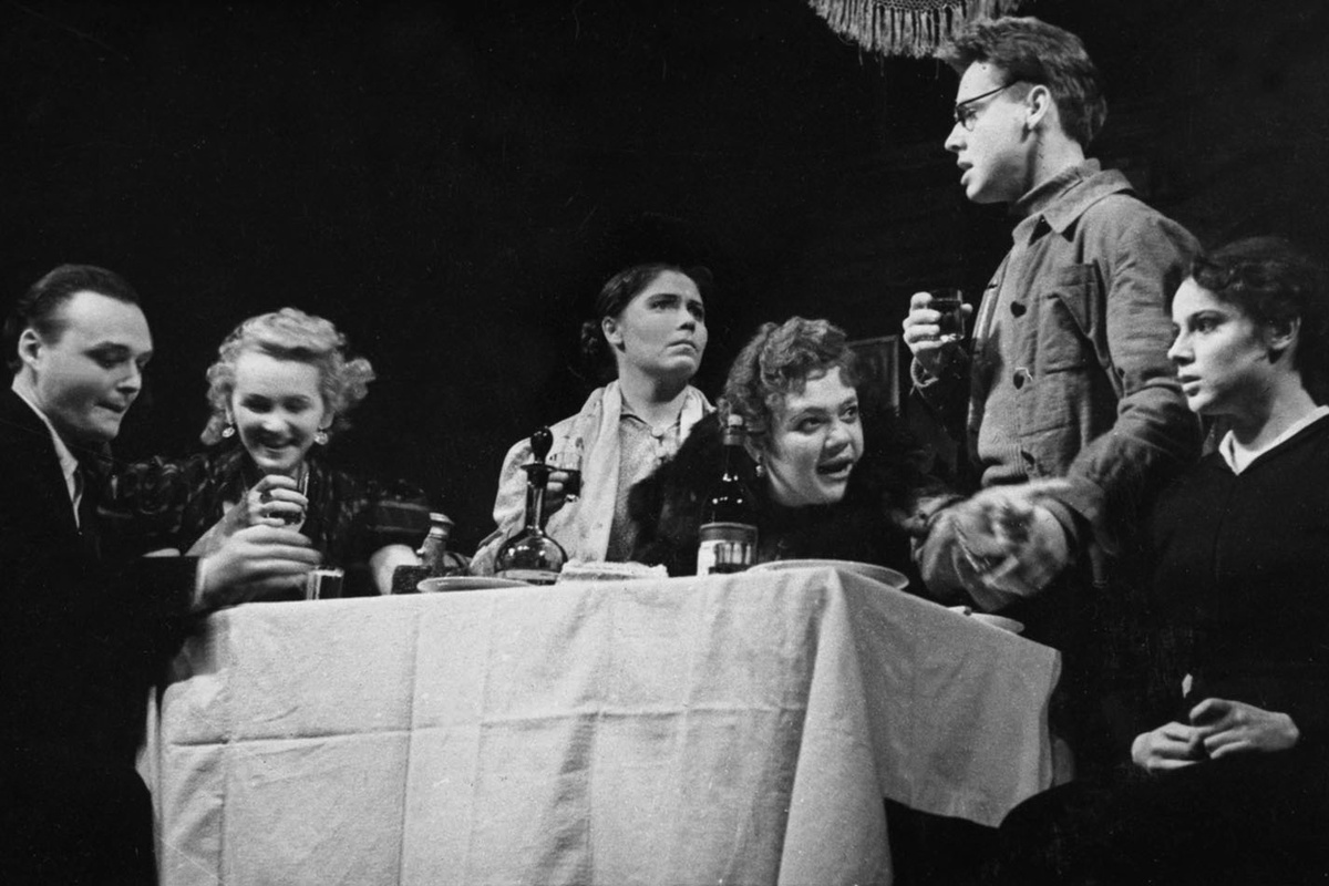 Премьера пьесы драматурга Виктора Розова проходила ночью. У труппы не было своего помещения, и сыграть спектакль удалось только на площадке Школы-студии. В тот день на сцену впервые вместе вышли будущие легенды: Галина Волчек, Олег Табаков, Игорь Кваша, Лилия Толмачева, Евгений Евстигнеев. А постановку осуществил педагог, актер и режиссер Олег Ефремов. Так родился «Современник», ставший одним из символов оттепели в нашей стране. Сцена из спектакля «Вечно живые» с участием Геннадия Печникова, Антонины Елисеевой, Карины Филипповой, Галины Волчек, Олега Табакова, Раисы Свиридовой фото: sovremennik.ru Зрители узнают, что открытие юбилейного, 70-го сезона театра традиционно прошло в день рождения Олега Павловича Ефремова. В здании на Чистых прудах организовали выставку. Левое крыло экспозиции посвящено Ефремову, а правое – Волчек. «На этих крыльях “Современник” и летит. А как и куда полетит – это уже зависит от нас с вами», – отметил художественный руководитель Владимир Машков. Не так давно