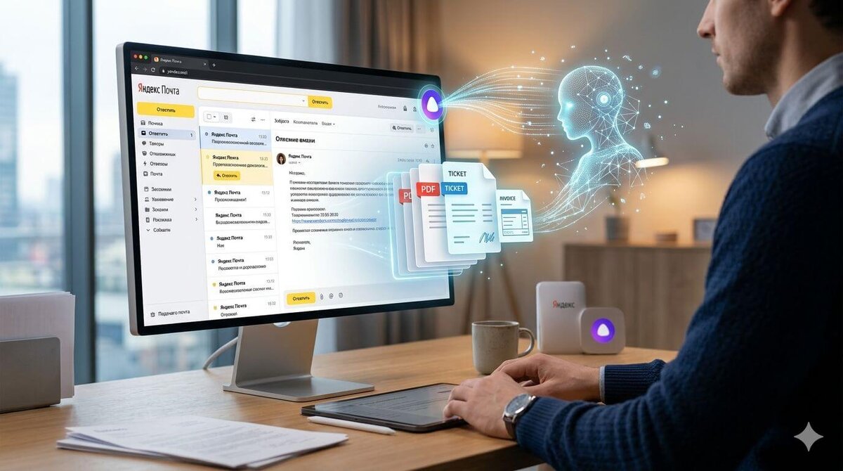 Издание РБК со ссылкой на пресс-службу Яндекса сообщает, что в «Яндекс Почте» отныне предлагается ассистент на основе искусственного интеллекта. Почтовые ящики описываются как архив, где хранятся чеки и счета, билеты и прочие документы. Разобраться в них должна помочь Алиса Про. Ассистент основан на модели Alice AI LLM. Она позволяет взаимодействовать с содержимым писем и вложениями, включая файлы формата PDF или таблицы. Также доступен поиск в интернете, чтобы можно было объединить информацию оттуда со сведениями из писем. Изображение: Gemini Поиск обещано вести не по словам, а по смыслу. Также модель поможет писать письма с нуля, редактировать уже имеющееся сообщение или менять его стилистику. Разработчики уверяют, что доступ к переписке даётся только по пользовательскому запросу, а сведения после обработки не сохраняются и не передаются. В частности, говорится, что пользовательские данные из писем не применяются для обучения ИИ Яндекса. Этот ассистент доступен подписчикам тарифного