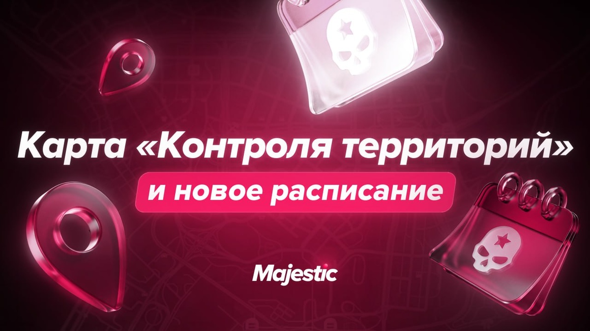 Встречайте обновленное расписание мероприятий и карту «Контроля территорий» на ВИКИ — теперь информацию о квадратах удобно смотреть даже вне игры. Не теряем время — актуальное расписание мероприятий: 👉Семейный «Контроль территорий» • Понедельник — активен; • вторник — неактивен; • среда — активен; • четверг — неактивен; • пятница — активен; • суббота — активен; • воскресенье — неактивен. 👉Фракционный «Контроль территорий» • Понедельник — неактивен; • вторник — активен; • среда — неактивен; • четверг — активен; • пятница — неактивен; • суббота — неактивен; • воскресенье — активен. 👉Захват Кайо-Перико и Форт-Занкудо • Понедельник — Форт-Занкудо; • вторник — Кайо-Перико; • среда — Форт-Занкудо; • четверг — Кайо-Перико; • пятница — Форт-Занкудо; • суббота — Форт-Занкудо; • воскресенье — Кайо-Перико. 🔖 Сохраняй расписание себе и поделись постом с другом, чтобы он тоже был в курсе изменений. ❤️ Majestic | ВИКИ