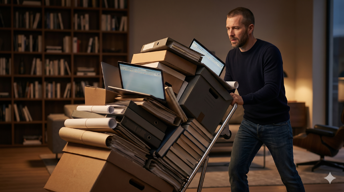 Вы хотите разобраться в новой теме. Открыли статью – хорошая, сохранили. Нашли курс – полезный, добавили. Наткнулись на смежную тему – а вдруг пригодится, оставили вкладку. Через три дня у вас солидная папка с материалами, семнадцать вкладок и ощущение, что тема размером с океан, а вы – с напёрстком. Знакомо? Большинство людей уверены: чем больше материала они впитают, тем лучше разберутся. И ведь звучит логично! Но именно эта стратегия превращает обучение из спринта в заплыв через болото. Представьте, что ваш мозг – это грузчик с тележкой. Вы подходите и кладёте на тележку главное – то, ради чего вообще затеяли обучение. Грузчик кивает: «Ок, это я легко довезу». Но потом вы начинаете докладывать: «А вот это тоже полезное», «А это на всякий случай», «А это просто интересное». Грузчик ещё кивает, но тележка уже скрипит. В какой-то момент он вообще перестаёт двигаться – стоит посреди комнаты, обложенный коробками, и тихо вас ненавидит. Наша рабочая память ограничена. Когда вы грузите в н