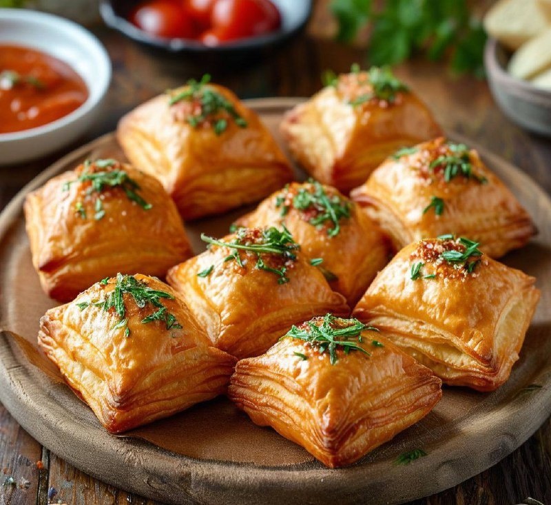 5. В середину каждого кусочка теста выложите по 1 столовой ложке начинки, соедините и защипните края.