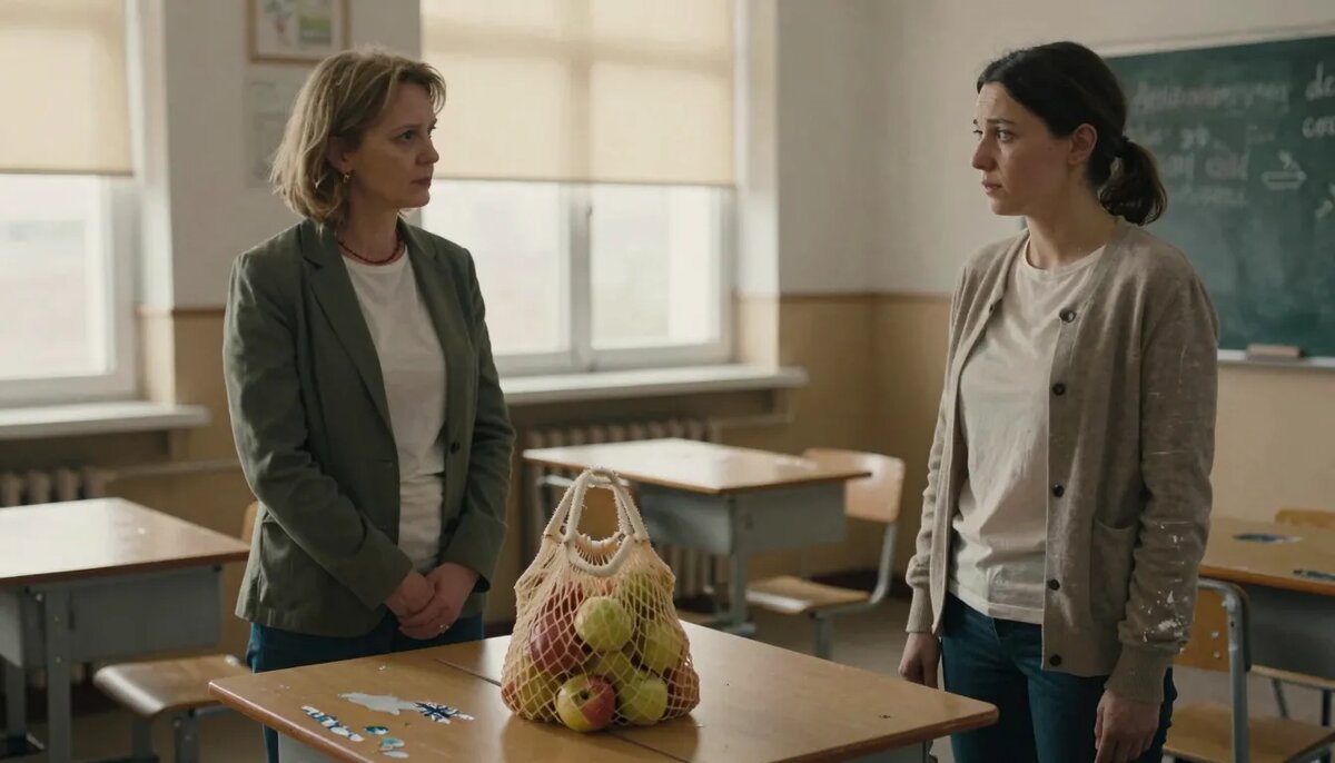 Светлана Юрьевна, классный руководитель 6 «Б», медленно подняла глаза от журнала. Её взгляд скользнул по выцветшему пакету с логотипом дешевого супермаркета. Потом по лицу Оксаны. Потом по мне — я стояла у шкафа, разбирая стопку рабочих тетрадей.