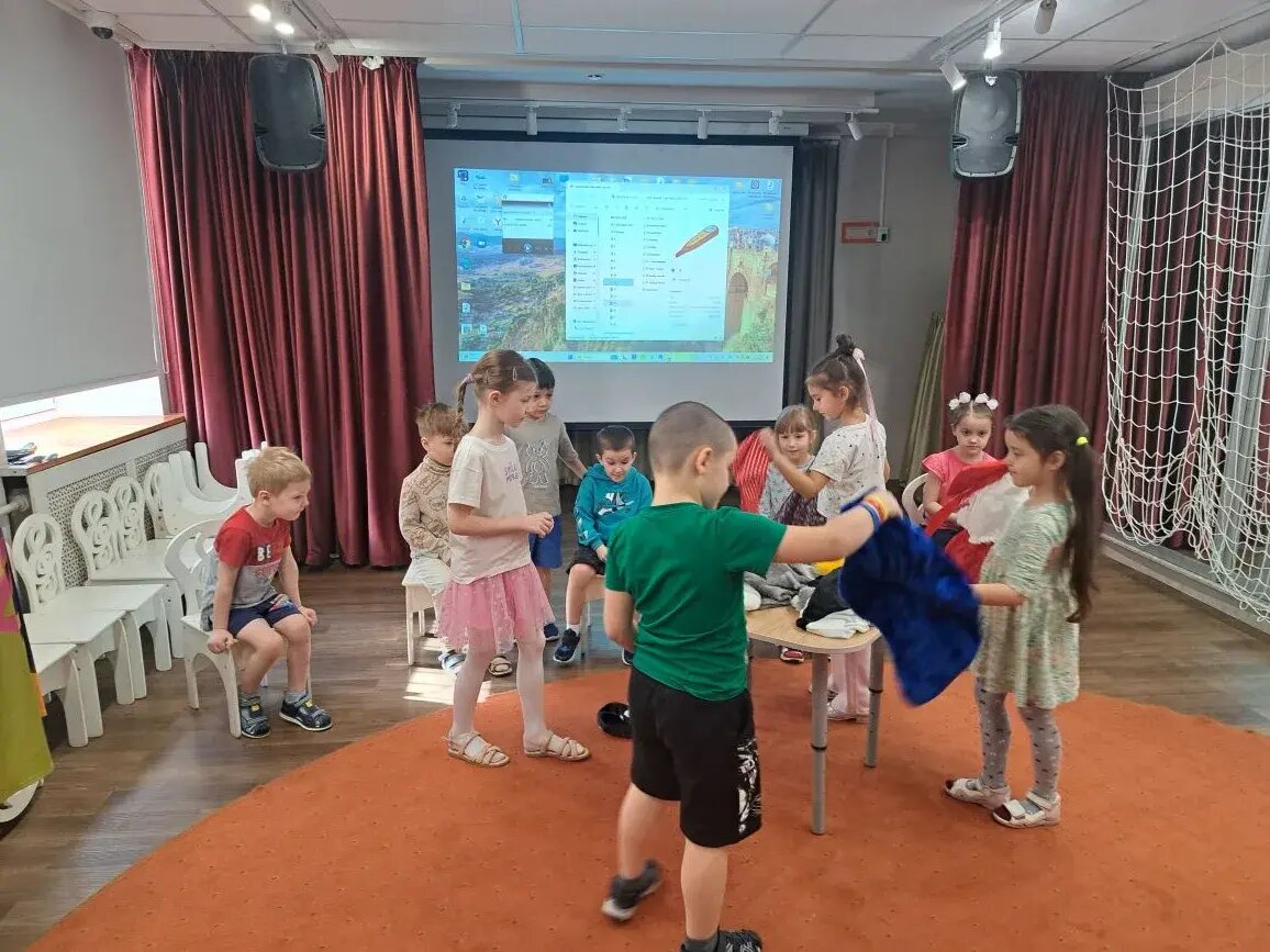 • о театральных профессиях: актёрах, режиссёрах, костюмерах, гримёрах, художника. Это помогло детям понять, сколько труда вкладывается в создание спектакля. «В рамках дня мы провели игру «Одень сказочного героя»: дети с интересом примеряли разные образы и чувствовали себя настоящими артистами. Ещё ребята потренировались чётко и правильно говорить, произнося скороговорки, учились выражать свои чувства с помощью мимики и жестов, передавать настроение и характер персонажей. Такие упражнения способствуют развитию речи, воображения, артистичности и уверенности в себе. В завершение дети подготовительной группы показали кукольный спектак
