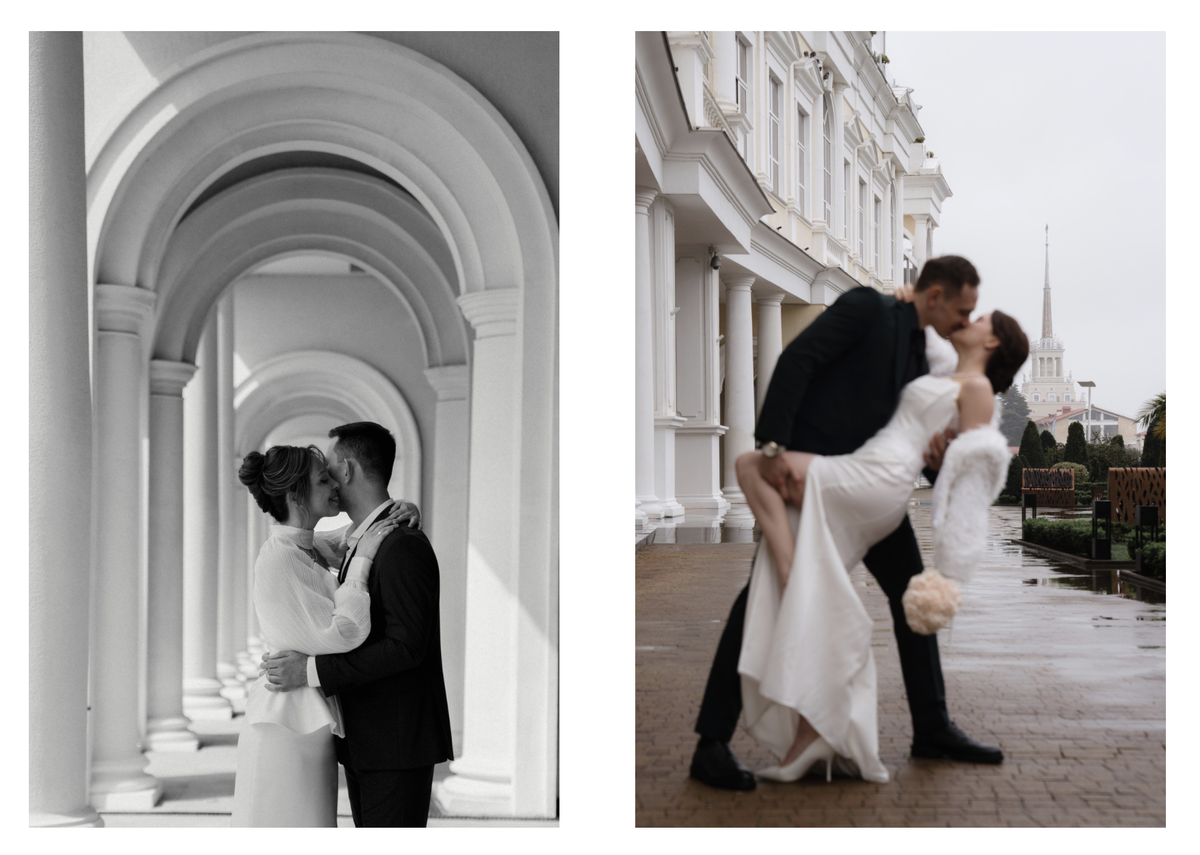 Сочи — уникальный город. Здесь в один день можно поснимать среди архитектуры, на фоне бескрайнего моря и в окружении заснеженных вершин. Как фотограф, специализирующийся на свадьбах и авторских фототурах на кабриолете, я выделил для вас топ-локаций, которые гарантируют стильный и качественный результат. Если ваша регистрация проходит в центральном ЗАГСе, вам очень повезло с логистикой. Буквально через дорогу начинается зеленый сквер, а в 100 метрах — территория Морского порта. Съемка в интерьерах отеля — это всегда про статус и спокойствие. При проживании во многих из них съемка на территории бесплатна. Для пар, которые хотят чего-то необычного и не боятся легких прогулок могут подойти Чайные плантации. Это невероятно атмосферное место, но важно помнить: часть пути (подъем) нужно будет преодолеть пешком. Горы — это то, что никогда не выйдет из моды. Помимо европейской архитектуры курортов, здесь вы получаете монументальный фон, который всегда актуален. Мои любимые точки — Горная Олимпи