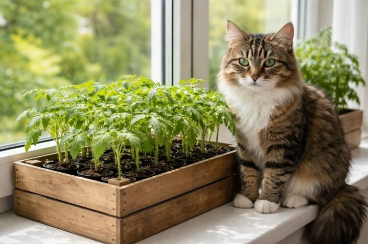Несколько альтернатив, чтобы оставить в целости питомца и растения Весной многие начинают выращивать рассаду на подоконнике, но для владельцев кошек это может стать настоящим испытанием. Коты обожают греться на солнышке на окошке. А тут вдруг им приходится делить площадь ещё и с ящиками с молодыми растениями. Чтобы сохранить рассаду и не навредить питомцу, стоит воспользоваться несколькими простыми советами. Поставьте рядом с подоконником уютную лежанку или подушку, где коту будет комфортно отдыхать. Можно положить туда его любимую игрушку или немного кошачьей мяты, чтобы привлечь внимание. Накройте ящики с рассадой специальной сеткой, пластиковыми крышками или даже обрезанными бутылками. Это не только убережёт растения от повреждений, но и не даст коту использовать землю в качестве туалета. Кошки не любят запах цитрусовых, лаванды, розмарина. Можно разложить между растениями корки апельсина или опрыскать землю водой с добавлением эфирного масла (в небольшом количестве). Поставьте ящик