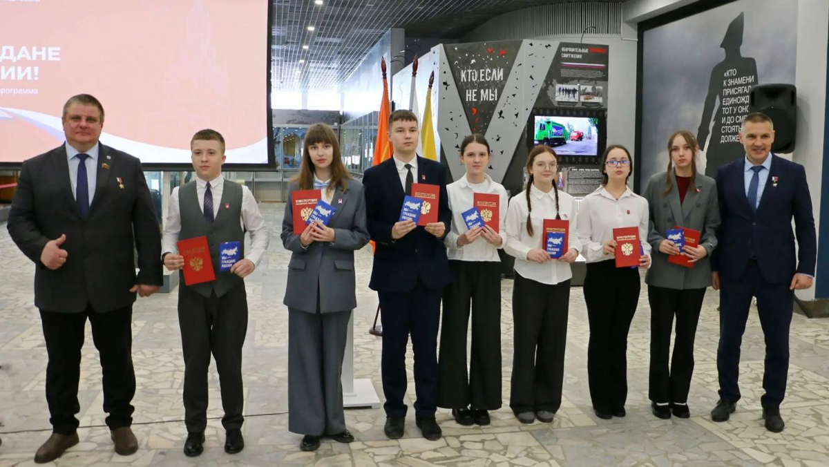В краеведческом музее Брянска состоялось торжественное вручение паспортов ребятам, достигшим 14 лет. Мероприятие провели в рамках Всероссийского проекта Движения Первых "Мы – граждане России". Участие в церемонии приняли депутаты областной Думы Людмила Журавлева, Марина Седнева, Евгений Вылцан и Герой России Александр Постоялко. Об этом сообщили в региональном парламенте. Народные избранники передали молодежи документы, удостоверяющие личность, а также напутствия и наилучшие пожелания. Паспорта в итоге получили 40 активистов движения из разных муниципальных образований Брянской области. Ребят отметили за заслуги в учебе, спорте, творчестве и общественной жизни. Каждый произнес слова присяги. Молодые люди отметили, что их переполняет чувство гордости от того, что они россияне. Фото: Брянской областной Думы