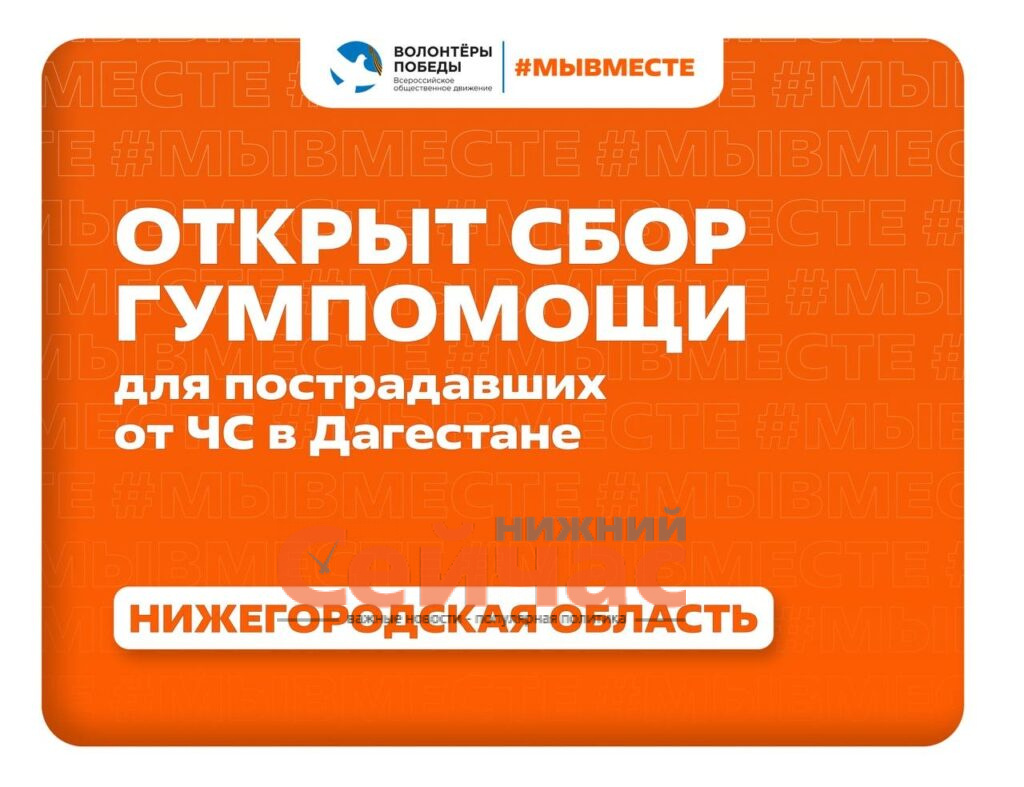 Штаб #МЫВМЕСТЕ Нижегородской области приглашает жителей региона присоединиться к гуманитарной акции в помощь пострадавшему от наводнения Дагестану. Об этом сообщили в пресс-службе губернатора и правительства Нижегородской области. Сбор необходимых вещей организован в двух точках в Нижнем Новгороде, затем собранные вещи волонтеры при поддержке правительства региона отправят нуждающимся. На данный момент в Республике Дагестан введен режим ЧС, от наводнения пострадали более 6 тысяч человек, подтоплены тысячи домов. Штаб #МЫВМЕСТЕ Нижегородской области организовал сбор гуманитарной помощи и призывает жителей региона, представителей бизнеса и общественные организации присоединиться к поддержке пострадавших. Сейчас сохраняется высокая потребность в оборудовании для откачки воды, инвентаре для волонтеров, питьевой воде, продуктах питания и предметах первой необходимости для людей, находящихся в пунктах временного размещения. Адреса и время работы пунктов приема гуманитарной помощи в Нижнем Но