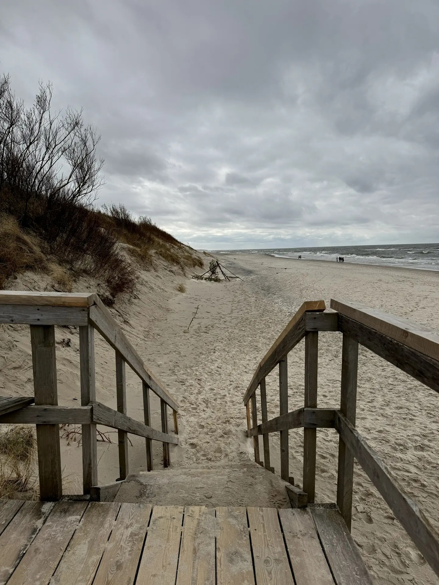 Балтийский ветер — это не поэтическая метафора, а реальная физическая сила. Скорость ветра на Косе может достигать 24 м/с, а порой и выше. В холодное время года настилы обледеневают настолько, что национальный парк официально просит туристов воздержаться от поездок. Дождь здесь может начаться внезапно и так же внезапно закончиться. Одеваться нужно слоями, обувь — непромокаемая и с хорошим сцеплением, особенно если вы едете не в разгар лета.