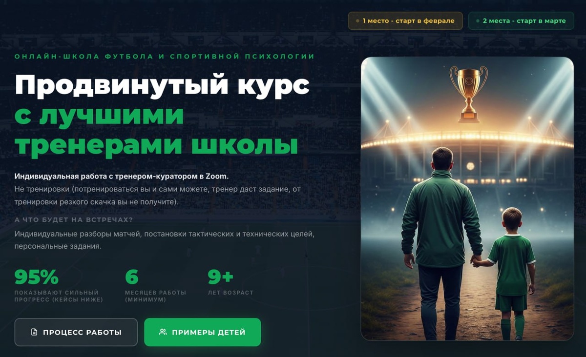 Изучите план работы с учеником. Это наш самый мощный курс, формат индивидуального наставничества. 🟢 95% показывают сильный прогресс (кейсы на сайте) 🟢 6 месяцев работы (минимум) 🟢 9+ лет возраст учеников ⚡️ 1 место - старт в апреле ⚡️ 2 места - старт в мае Обязательно посмотрите на сайте: 📋 Обновлённые планы работы с учениками: теперь вы можете заранее увидеть, как именно строится индивидуальная работа тренера с ребёнком. → 🖱 Посмотреть пример плана → Свежие кейсы с видеонарезками - посмотрите, как прогрессируют ученики продвинутого курса. На сайте вы найдёте: ✅ Подробное описание процесса работы ✅ Пример плана развития ученика на 1 месяц ✅ Подробно инфо о том, кому подходит курс, а кому нет ✅ Стоимость и варианты оплаты → Всё о Продвинутом курсе Чтобы узнать условия и занять место - оставьте заявку на сайте.