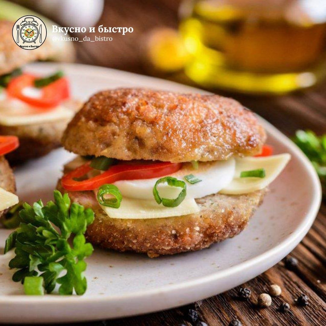#обед #ужин #30мин 🕒 Время приготовления 30 мин Порции 4 Сложность: легко 🧾 Ингредиенты: 🟠Говяжий фарш — 500 гр 🟠Сыр — 100 гр 🟠Яйца — 2 шт 🟠Болгарский перец — 1 шт 🟠Зелёный лук — по вкусу 🟠Орегано — 0,5 ч.л 🟠Сушёный чеснок — 1 ч.л 🟠Соль, перец — по вкусу 🟠Растительное масло — для жарки 🍴Приготовление: 1. Яйца отварите вкрутую (около 10 минут), остудите и очистите. 2. Фарш смешайте с солью, перцем, орегано и чесноком, слегка отбейте. 3. Сформируйте котлеты и обжарьте на среднем огне по 3–5 минут с каждой стороны до румяности. 4. Готовые котлеты немного остудите и разрежьте пополам. 5. Нарежьте сыр, яйца и перец кусочками, зелёный лук измельчите. 6. На половинку котлеты выложите сыр, яйцо и перец, слегка посолите, посыпьте луком и накройте второй половинкой. 7. Соберите остальные бургеры аналогично и подавайте. Вкусно и Быстро | Мы в Мах 📲