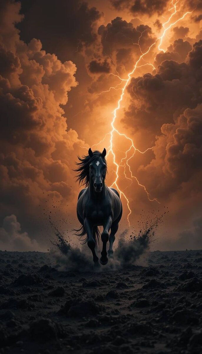 Времени. В иерархии первообразов он стоит выше инертной материи и статичного объема, знаменуя собой появление четвертого измерения — той динамической оси, что превращает застывшее Пространство в живой, пульсирующий континуум. Его суть раскрывается в двух ипостасях. Во-первых, Конь — это Четверица, неразрывное единство трех пространственных координат и животворящего потока Длительности. Он стоит на самой грани, разделяющей Непроявленное (Мир до начала) и Проявленное (Мир форм). Это стража порога, где Абсолютная Пустота впервые обретает ритм и направление, где «Нигде и Везде» уступает место закону Причины и Следствия. Во-вторых, Конь является олицетворением той первозданной Мощи, что вызывает само это разделение — Энергии Большого Взрыва. Он не просто свидетель появления Времени, но и его носитель, та Сила (Фохат), что вспенивает первичный Океан Субстанции, закручивая спирали галактик и «квантовые узлы» вещества. В этом образе запечатлен неудержимый импульс к Движению, скорость раз