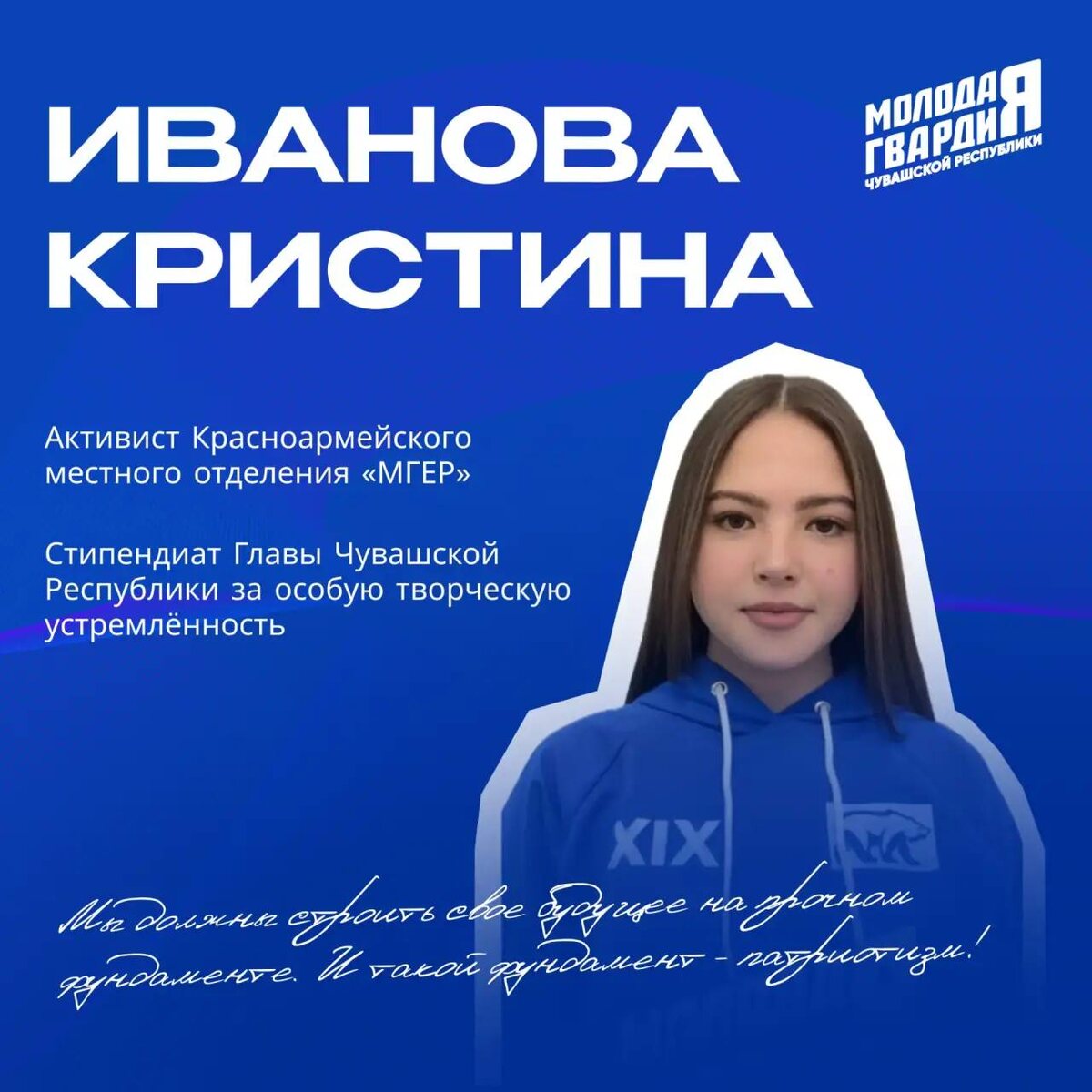Сегодня особенный выпуск — праздничный! Мы расскажем о Кристине Ивановой, которая сегодня отмечает свое восемнадцатилетие! 1️⃣Почему решила заниматься общественной деятельностью? Все началось с желания никогда не оставаться в стороне. Хотелось реально влиять на происходящее, улучшать жизнь вокруг себя и чувствовать, что твои действия приносят конкретную пользу людям. Не словом, а делом показать то, что я могу своими делами улучшить жизнь других людей! 2️⃣Помнишь ли свой первый день в организации или первое мероприятие? В МГЕР я уже 3 года. Первый день запомнился навсегда. Мы стали волонтерами акции «Георгиевская Ленточка» накануне 9 мая. А еще запомнился момент, как я впервые надела куртку с логотипом «Молодой Гвардии»! Я была очень горда собой в тот момент! 3️⃣Над какими проектами или направлениями деятельности в МГЕР ты работала? Я занималась несколькими направлениями, но больше всего сил и души вложила в два: 1. Волонтёрские акции помощи семьям СВО. 2. Патриотический проект по