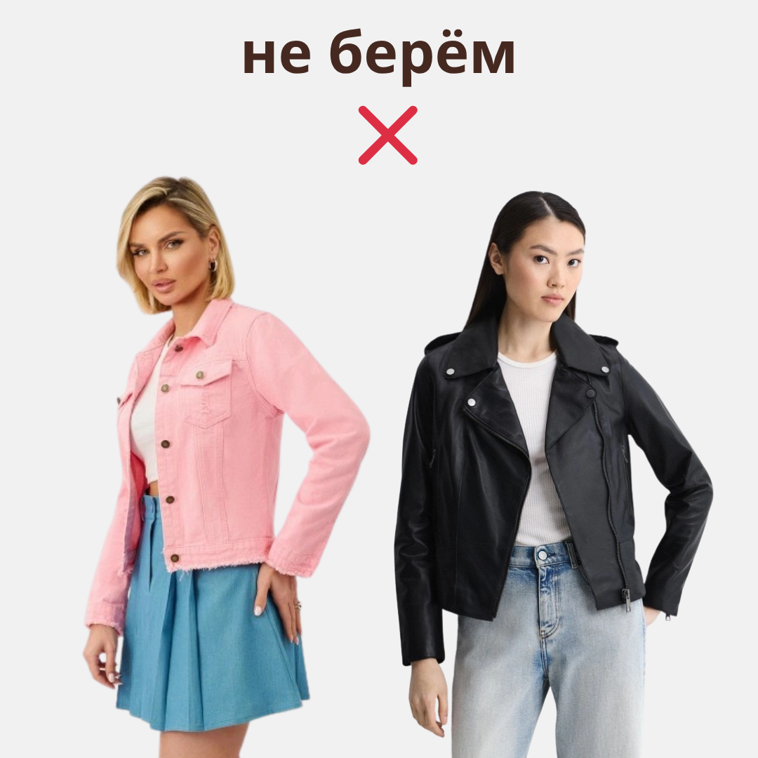 И снова о самом главном, ведь дьявол, как известно, кроется в деталях. Поговорим о важных мелочах, на первый взгляд, даже не заметных, но способных испортить всё впечатление. Сегодня подробно разберём верхнюю одежду, а также джинсовки на позднюю весну-лето. Кстати, эти рекомендации будут актуальны не только на этот сезон, а на несколько лет вперёд. Маленькие облегающие джинсовки и кожанки, под которые можно уместить разве что такую же обтягивающую футболку, мы, по-прежнему, не носим. Они не практичны, плохо сочетаются с актуальными сейчас низами и смотрятся плоско и скучно. Выбирайте беспроигрышный вариант прямого кроя, со свободой в рукавах, чтобы не мучиться с подбором нижнего слоя под него. Хочется женственности — возьмите приталенную куртку объёмного кроя или модель силуэтного кроя с выведенным плечом. Важно, чтобы облегание на нашей куртке чередовалось с объёмными элементами. Наверное, это единственные оттенки, которые находятся вне зоны трендов, и не только в этом году. Кислотны