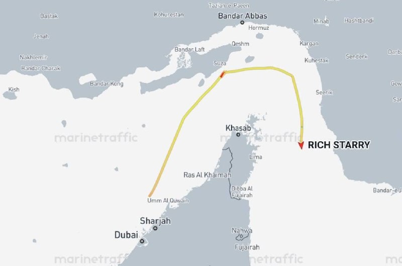 Подсанкционное судно Rich Starry первым прошло через Ормузский пролив после его перекрытия американскими военными. На борту - около 250 тысяч баррелей метанола, экипаж китайский. Следом к проливу идёт ещё одно подсанкционное судно - Murlikishan, ранее перевозившее российскую и иранскую нефть. Адмирал Дун Цзюнь, министр обороны Китая, обращаясь к администрации Трампа и ВМС США: «Наши суда осуществляют проход в водах Ормузского пролива. У нас есть торговые и энергетические соглашения с Ираном. Мы уважаем эти соглашения и ожидаем, что другие не будут вмешиваться в наши дела. Иран контролирует Ормузский пролив, и этот пролив для нас открыт» @geonrgru | 🇷🇺 MAX | sponsr.ru