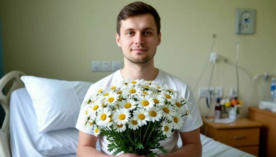 — Ой, нет, вазы нет… — смутилась Анна. — Поставьте пока на подоконник, я потом попрошу медсестру что‑нибудь принести.