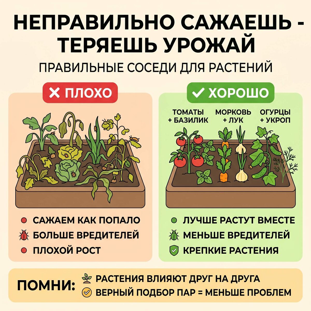 Например, базилик рядом с томатами. Я сначала посадила просто из-за нехватки места, а потом заметила, что и растут они рядом хорошо, и запаха вредителей меньше.