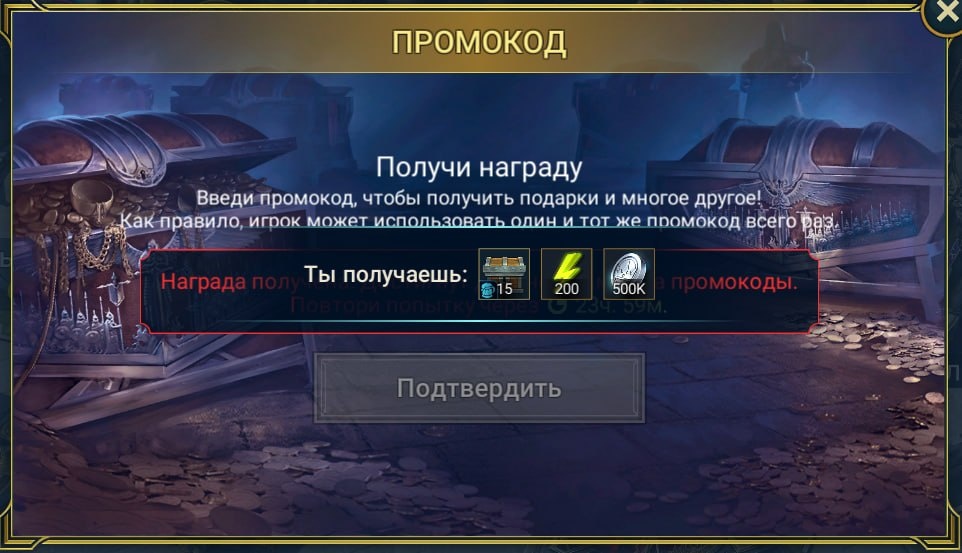 Для айфонов вводить тут: https://plarium.com/en/redeem/raid-shadow-legends/