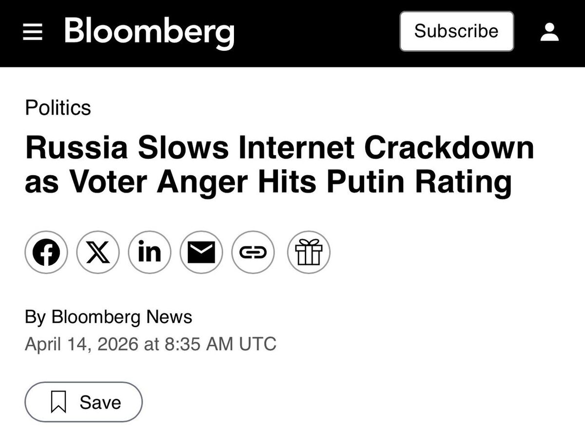 Причина: падение рейтингов одобрения и волна недовольств от пользователей, пишет Bloomberg. Ужесточение шло от ФСБ, но высокопоставленные чиновники внутри власти начали предупреждать о политических и экономических рисках. В итоге новые ограничения поставили на паузу. ⚡️ Подписаться.