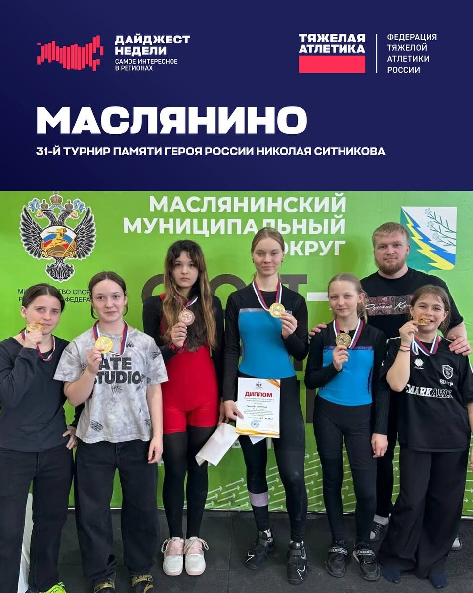 Маслянино, Новосибирская область Поселок Маслянино принял 31-й турнир памяти Героя России Николая Ситникова. На помост вышли спортсмены из семи районов и округов региона. Главная интрига — традиционное противостояние хозяев помоста, сборной Маслянинского округа, и сильнейших команд области. Турнир показал: школа маслянинской тяжелой атлетики остается одной из опорных. Местная команда взяла серебро в командном зачете. Луганск В Луганской Народной Республике прошло первенство республики по тяжелой атлетике среди юниоров и юниорок 15-23 лет. Старты стали главной площадкой для отбора сильнейшей молодежи региона, которая будет представлять ЛНР на крупных межрегиональных и всероссийских турнирах. Гурьевск В Гурьевске состоялось первенство Кузбасса по тяжелой атлетике среди юношей и девушек 13-17 лет. Параллельно прошли региональные соревнования среди атлетов 13-15 лет — VI турнир памяти олимпийского чемпиона А. И. Вахонина и его первого тренера И. В. Жукова. Турнир собрал лучших молодых