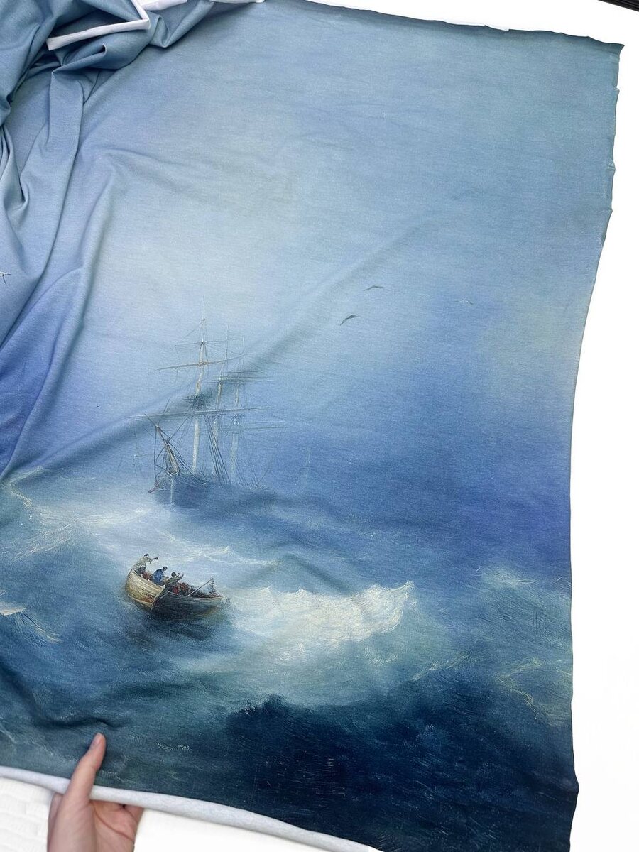 !!! Трикотаж (кулирка), купон с арт- принтом в стиле Айвазовского✨ Идеален для футболок, лонгсливов, легких толстовок и свитшотов, брюк и шорт✨ Кулирка мягкая, хорошо тянется✨ 📎Кулирка-купон art.38183 Цена: 790Р/метр Состав: хлопок 92%, эластан 8% Ширина: 165/100см Оформить заказ можно 2 способами:⬇ - на сайте - написать в Max, Telegram, Whatsapp нашему менеджеру +7-965-317-35-51👩💻 #хлопок #кулирка #трикотаж #артпринты #artпринты