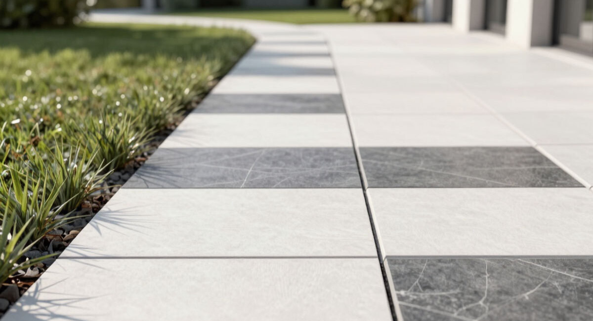 - Керамогранит. Прочный, красивый, дорогой. Но скользкий — это его главная беда. Один дождь — и дорожка становится травмоопасной. Для участка, где бегают дети и ходят пожилые родственники, это не вариант.