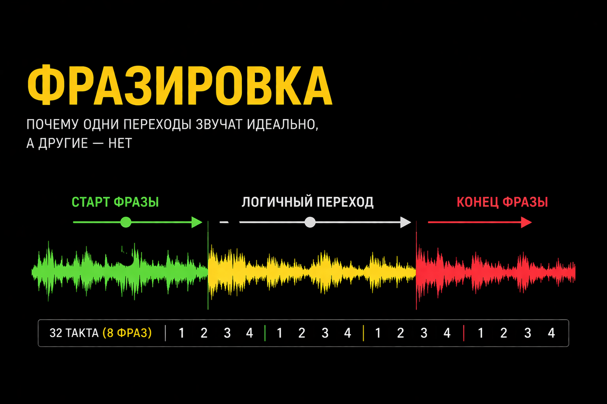 На плеерах вроде Pioneer CDJ-3000 и в Rekordbox фразы часто видно по waveform.
