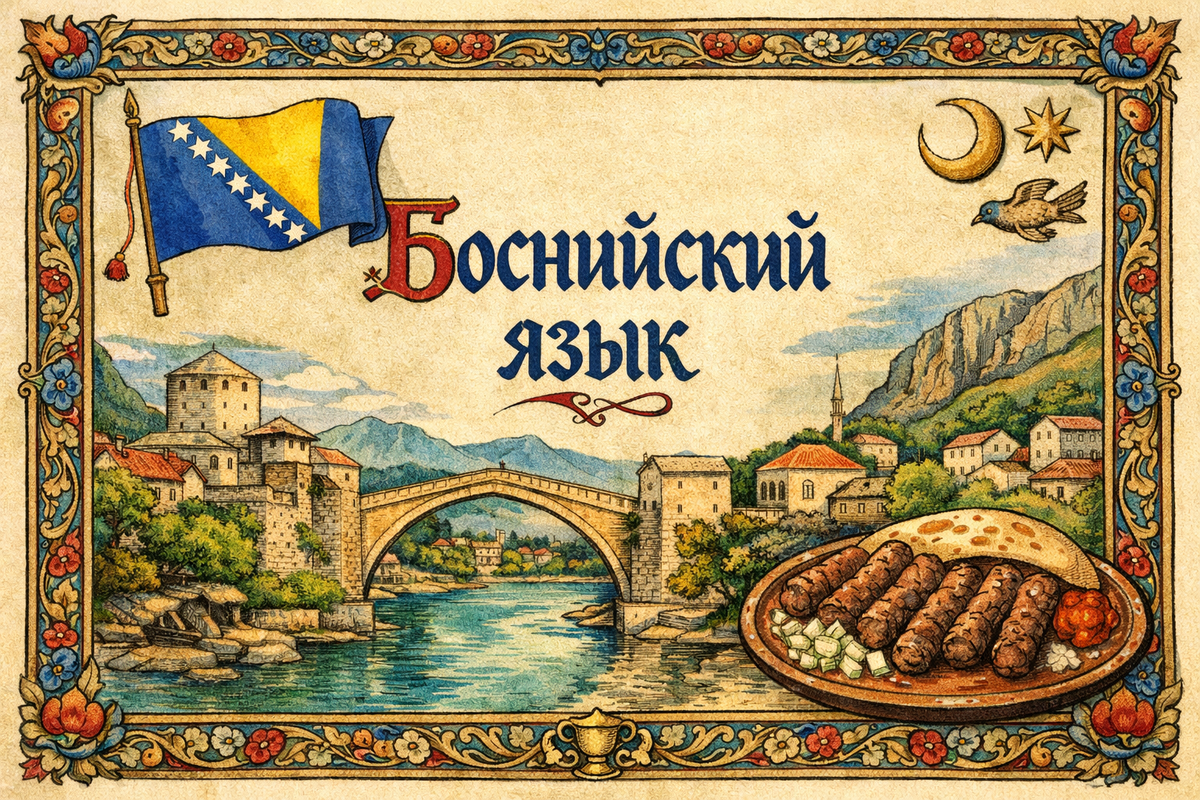 В нашем путешествии по южнославянским языкам мы уже встречались с сербским (кириллица и две азбуки), хорватским (лавандовая ијекавица) и черногорским (самые молодые буквы ś и ź). Боснийский — их брат, который долго жил в одном доме, но всегда держал в своей комнате турку для кофе и арабеску на стене. Сегодня мы познакомимся с этим удивительным языком, узнаем, сколько на нём говорят, чем он дышит, и почему его голос — это отдельная, неповторимая мелодия Балкан.