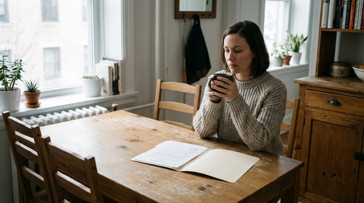 В воскресенье она встала пораньше. Сварила кофе. Достала из ящика стола папку — голубую, с завязками. Положила на край стола. Поставила чайник.