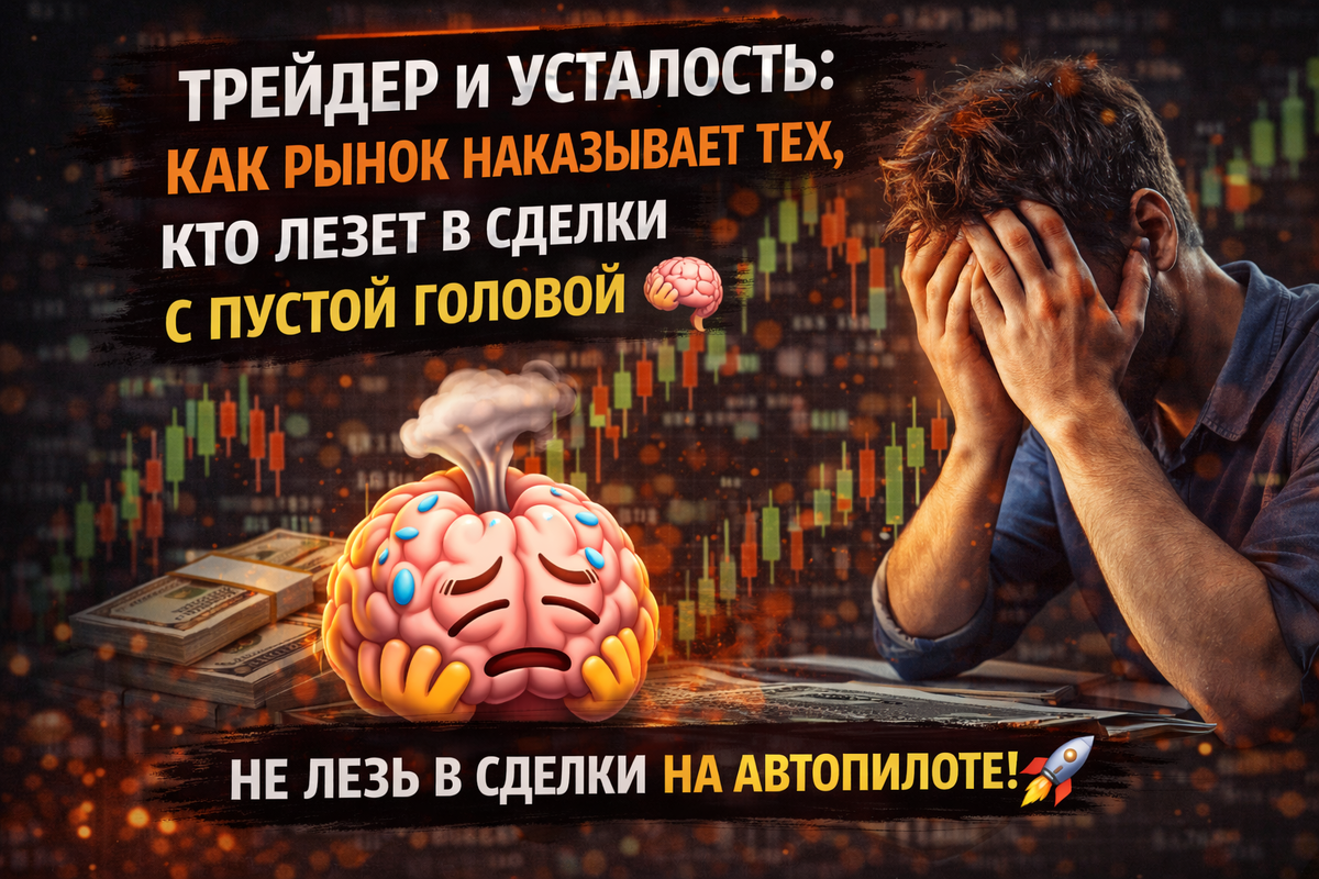 Я, Марчук Пётр, давно заметил одну неприятную, но очень честную вещь: рынок особенно жёстко наказывает не только жадных и суетливых, но и уставших. Причём делает это без предупреждения и очень воспитанно — просто забирает деньги 💸 Многие трейдеры недооценивают усталость. Им кажется: “Ну подумаешь, не выспался”, “Ну подумаешь, голова тяжёлая”, “Сейчас кофе выпью и разгонюсь”. И вот человек садится к терминалу в состоянии, где мозг уже работает не как аналитический центр, а как старый ноутбук с двадцатью открытыми вкладками 😏 С виду всё нормально. График есть. Кнопки работают. Свечи двигаются. Но качество решений уже совсем не то. Усталый трейдер хуже видит контекст. Он начинает путать сильный сигнал с шумом, влетает туда, где надо было подождать, передвигает стопы без логики, пересиживает убытки и рано режет прибыль. То есть делает почти всё, что рынок любит видеть у своей будущей жертвы. Ирония в том, что уставший человек часто считает себя “вполне нормальным”. В этом и ловушка. Ты н