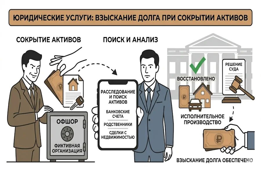 - В чем угроза: Пока вы ждете действий от судебных приставов, должник переписывает имущество на родственников, банкротит пустышку и легализует выведенный капитал.