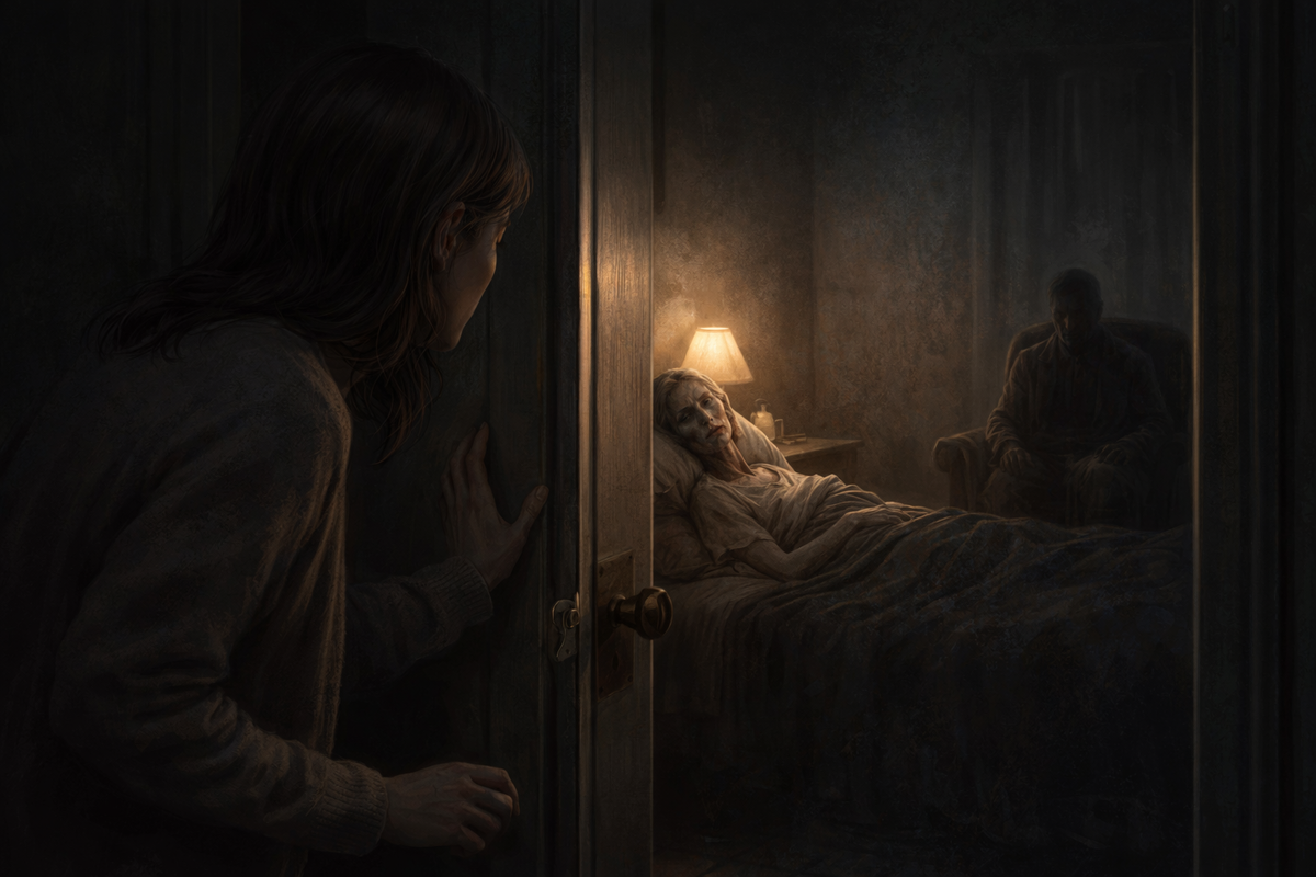 «Если услышите что-то… не заходите. Пожалуйста». Я тогда только кивнула. Странно, конечно, но мало ли. Дом старый, слышимость такая, что можно разобрать, кто чай пьёт, а кто ссорится. Но у неё… было иначе. По ночам иногда раздавался скрип. Не шаги, не мебель. Как будто что-то медленно тянут по полу. Иногда — глухие удары. Я пару раз подходила к двери, прислушивалась. И каждый раз вспоминала: «не заходите». Прошло недели две. Однажды вечером я поднималась по лестнице и увидела — её дверь приоткрыта. Свет внутри горел. Я остановилась. Сердце вдруг начало биться быстрее. «Не заходите». Я уже почти прошла мимо… но из квартиры донёсся голос. Слабый. Женский. «Помоги…» Я замерла. Потом медленно толкнула дверь. В квартире пахло лекарствами. И чем-то ещё — тяжёлым, затхлым. В комнате было темно, только лампа в углу. На кровати лежала соседка. Но это была не та женщина, которую я видела. Лицо осун