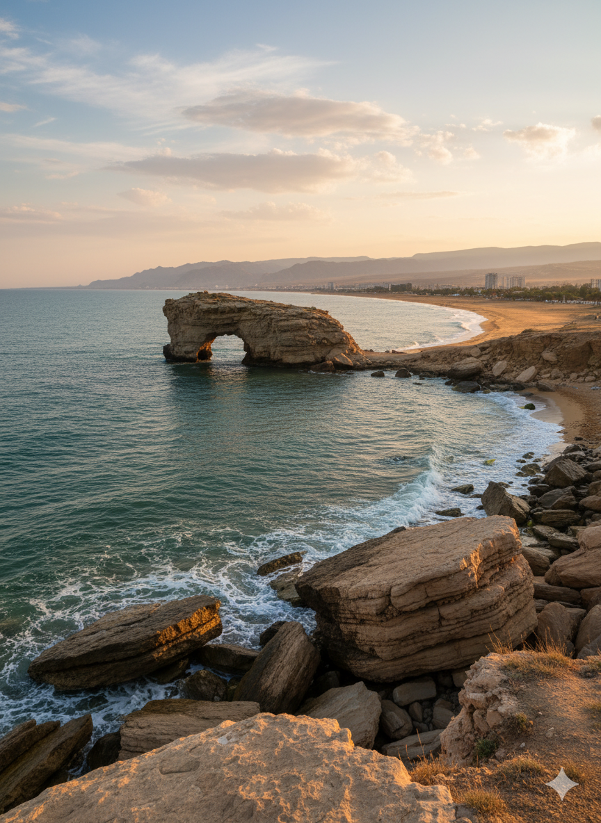 Пляж сформировался естественным образом: каменные гряды у берега служат природными волнорезами, защищая воду от волн и делая её особенно прозрачной. Именно благодаря этому в советские годы Избербаш приобрёл репутацию «дагестанской Ривьеры» среди местных. Основали город в 1931 году нефтяники, но тёплое мелководное море быстро превратило рабочий посёлок в курорт.