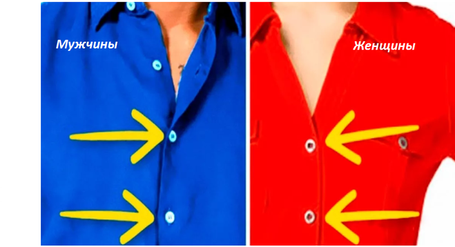 Мужчины же одевались сами. Поэтому им пуговицы — со своей правой стороны.