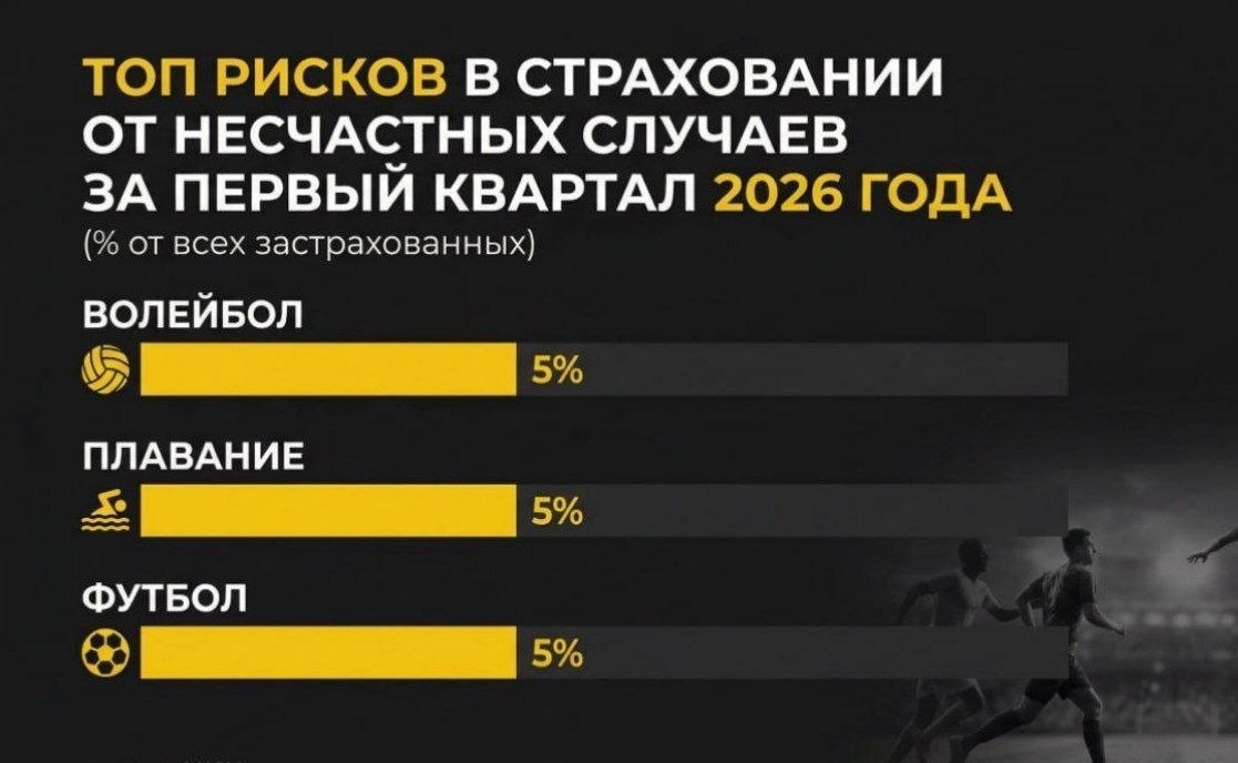 За первый квартал 2026 года продажи таких полисов выросли на 26% - люди всё чаще хотят подстраховать здоровье, особенно когда речь про спорт и активный отдых. И это логично. Полис стоит недорого.При этом он покрывает травмы, вывихи, переломы и другие последствия, которые могут выбить из колеи и ударить по бюджету. Кто страхуется? 40 лет - средний возраст покупателя Самый старший из клиентов - 92 года А ещё +25% к продажам детских полисов Чем занимаются застрахованные дети? 🏊♂️ Плавание - 18% 🤸♀️ Художественная гимнастика и футбол - по 13% 🏕 Активности в детских лагерях - 11% Где страхуются чаще всего? Москва, Подмосковье, Петербург, Краснодарский край и Татарстан. 🍂 Важный сезонный момент: скоро стартуют массовые забеги. Организаторы всё чаще просят полис от НС для участия. Легкая атлетика войдёт в топ-3 уже во втором квартале. Вывод простой: спорт и активная жизнь - это здорово, но небольшой полис за 600-700 рублей даёт спокойствие. Особенно когда речь о детях. Подумайте