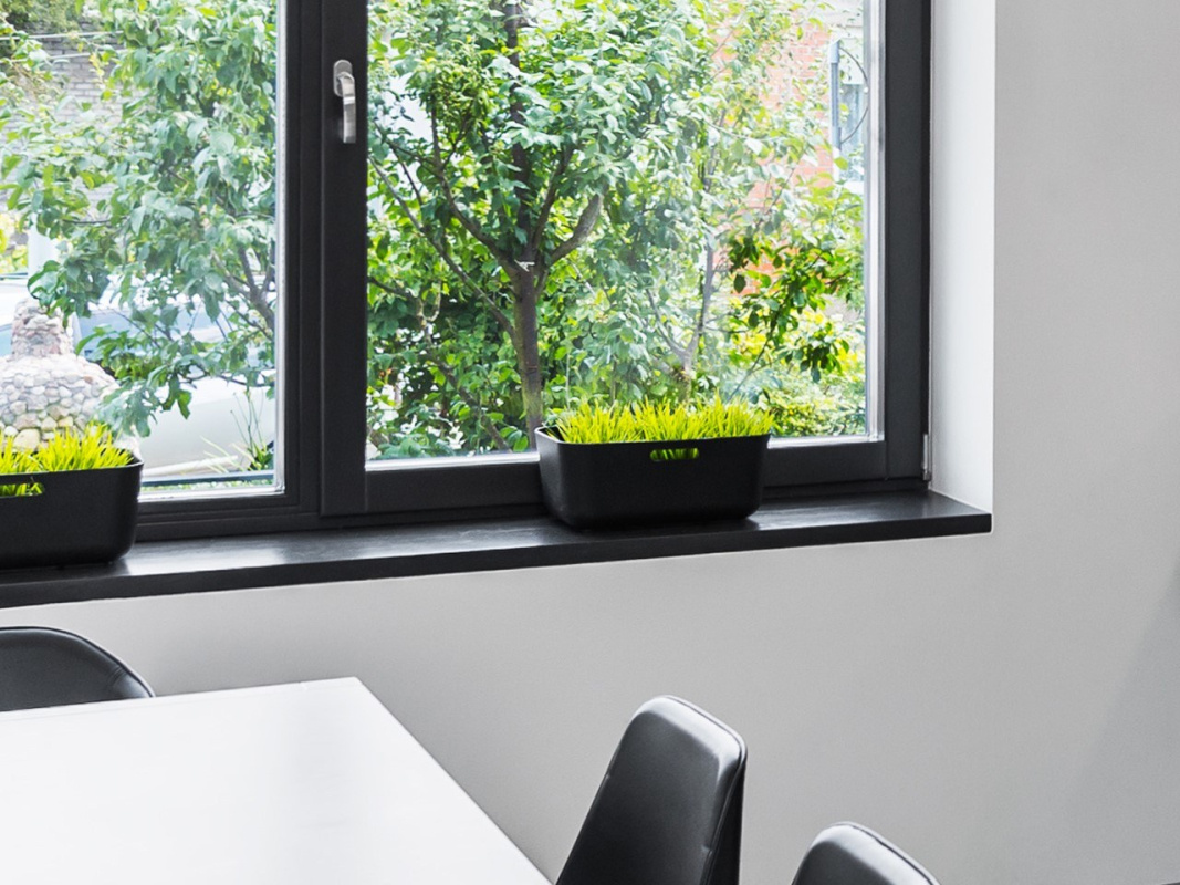 Фурнитура Roto NX, стеклопакеты 40 мм асимметричные (для лучшей звукоизоляции) с мультифункциональным покрытием (для отражения теплового излучения в обе стороны) и аргоновым заполнением (для лучшей термоизоляции) по формуле 4MFN-16А-4-12-4.
