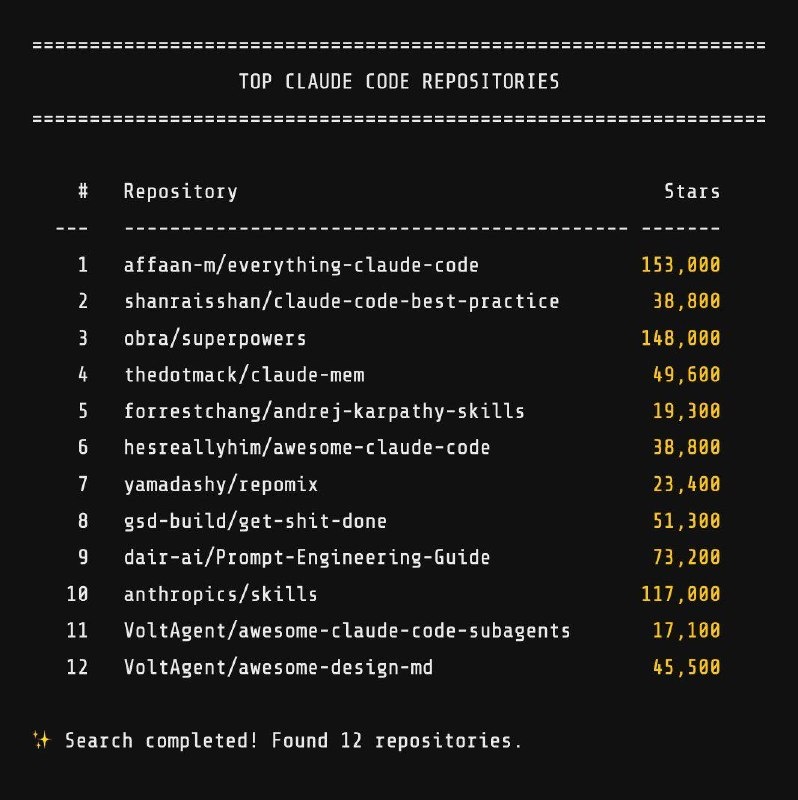 Эти 12 репозиториев наиболее часто упоминаются в среде вайбкодеров. Забирайте себе! 1. Everything Claude Code Полная коллекция готовых конфигураций Claude Code от победителя хакатона Anthropic, включая агентов, навыки и хуки. 2. claude-code-best-practice Практическое руководство по лучшим практикам использования команд, агентов, навыков и хуков в Claude Code. 3. Superpowers Фреймворк агентных навыков для Claude Code и Cursor с маркетплейсом плагинов. 4. claude-mem Система мгновенной постоянной памяти для Claude Code на базе Node.js и SQLite. 5. Karpathy-Inspired Claude Code Guidelines Один файл CLAUDE.md с рекомендациями, вдохновленными Андреем Карпати, для улучшения поведения Claude Code. 6. Awesome Claude Code Куратированный список ресурсов и инструментов для Claude Code. 7. Repomix Инструмент для упаковки всего кодбейса в один md-файл. 8. Get Shit Done Легкая система мета-промптинга и контекст-инжиниринга для разработки в Claude Code. 9. Prompt Engineering Guide Полное руко