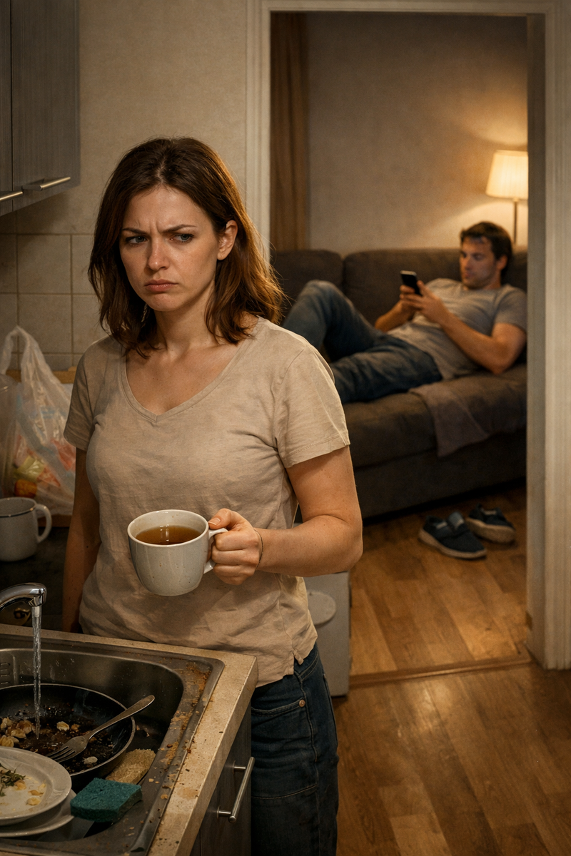 😐Вот он пришёл с работы. Я тоже, между прочим, пришла. Только я ещё по дороге забежала в магазин, а он просто доехал на метро. — Привет, — говорит, и сразу в телефон. На диван плюхнулся. Ноги вытянул. Я смотрю на раковину. Там тарелки с утра. Мои? Да, мои. Но он же тоже завтракал? Ах да, он «только чай пил». Чашка в раковине одна, а вилка есть. Я точно помню, он яичницу делал. Значит, вилка его. И меня как подкосило. «Ну всё, — думаю. — Опять начинается. Он даже не замечает, что я убираю. Вообще никогда не замечает. Я ему как прислуга. Если я сейчас промолчу, то до конца жизни буду мыть за ним тарелки. Он специально притворяется, что не видит беспорядка. Потому что ему просто плевать на меня». 😏 Я специально громко поставила сумку на кухне. Потом открыла кран — так, чтобы шумно. — Лень, ты чего? — спрашивает он из комнаты, не отрываясь от телефона. — Ничего, — отвечаю я ледяным тоном. — Ты же всё равно не понимаешь. Он вздыхает. Я чувствую этот вздох. Он означает: «Опять ты со своими