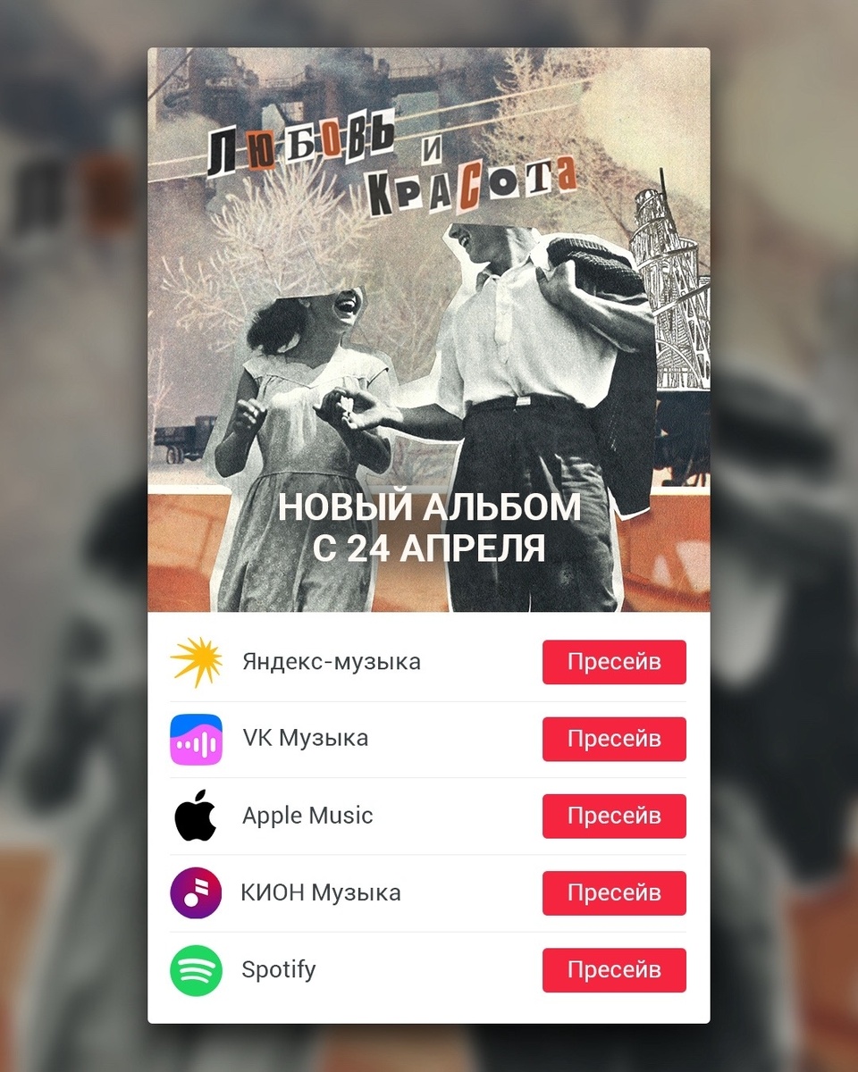 Новый альбом LUMEN «Любовь и Красота» появится на всех цифровых площадках 24 апреля! Сделайте пресейв, чтобы не пропустить релиз: band.link/lumenlove Билеты на презентацию нового альбома в Москве 2 мая — здесь.