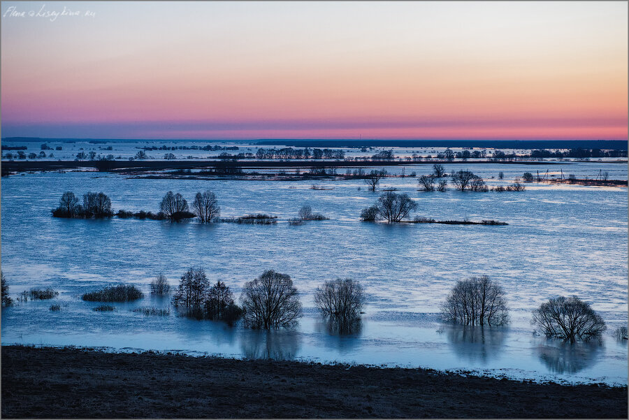 Район Белоомута и Луховиц — одно из первых мест, куда я приезжаю наблюдать за разливом. Затопленные поля уходят до горизонта, дороги превращаются в каналы, а вдоль обочин стоят припаркованные лодки местных жителей — как в другом месте стоят велосипеды.