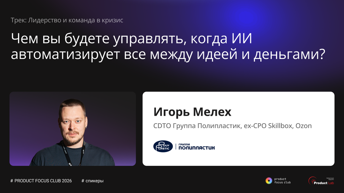 Специалистов не заменяют потому что они слабые. Их заменяют потому что большую часть их работы теперь дешевле автоматизировать. PRD, ресёрч, аналитика, коммуникации — все это уже частично едет на AI. И вопрос теперь не "умеешь ли ты это делать", а "какую ценность ты создаешь поверх этого". На Product Focus Club 2026 этот вопрос разберёт Игорь Мелех, CDTO Группы Полипластик, ex-CPO Skillbox, Ozon. • какие задачи уже автоматизируются — и где это реально работает • как смещается роль: чем теперь будут заниматься продакты? • какие навыки теряют ценность — и что становится критичным в 2026. Узнать подробнее и оставить заявку