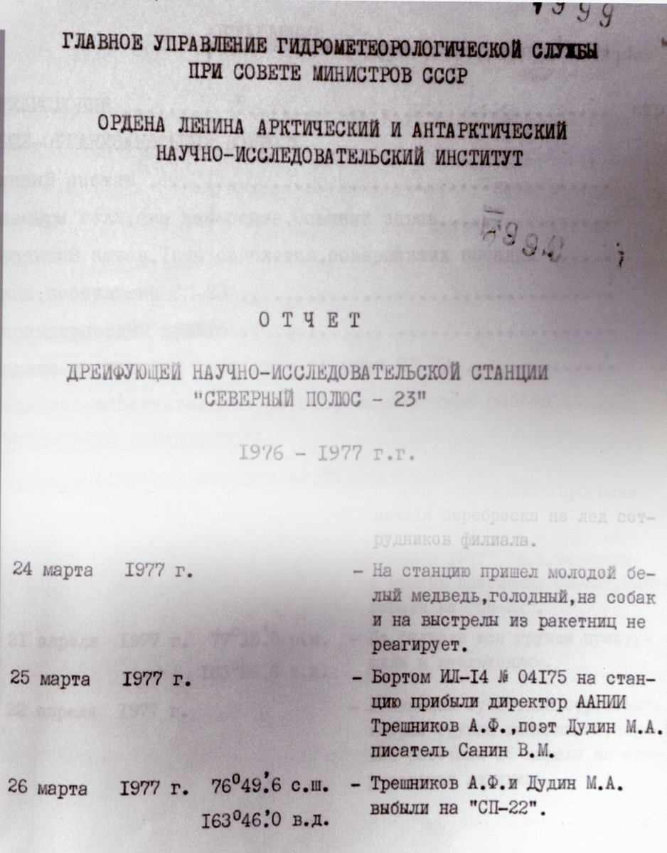 Выяснилось, что Дудин пробыл на полярных станциях шесть дней – с 25 по 30 марта 1977 года. Он общался с полярниками и даже читал им стихи. Есть фотография, на которой запечатлен этот момент.