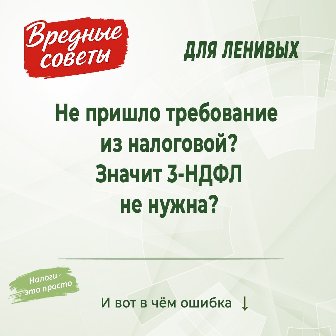 😌 Можно дальше жить спокойно, ничего не подавать, ничего не проверять. 🕺 Налоговая же не маленькая. Если надо - сама напишет. Правда? 🙂 Удобная логика для тех, кто любит играть с налоговой в угадайку. 👀 👉 Обязанность отчитаться не появляется после письма из налоговой. Она появляется, если был получен доход, по которому нужна декларация. Логика тут такая: ➖ не “мне ничего не прислали, значит, я свободен”, ➖ а “у меня был доход, надо проверить, должен ли я отчитаться”. А письмо из налоговой - это та ещё рулетка. 🎲 Оно может: 🔹 прийти, 🔹 не прийти, 🔹 прийти не туда, 🔹 прийти с опозданием, 🔹 прийти даже тогда, когда декларация вам вообще не нужна. Поэтому ориентироваться только на письма из инспекции - идея примерно того же уровня, что лечить зубы по гороскопу. 🙈 👉 Если сомневаетесь, нужно ли вам отчитываться, 👇 Разбор личного кабинета - 1500 ₽. Проверю, нужно ли отчитываться, есть ли риски и не упустили ли вы что-то важное. Напишите слово РАЗБОР.