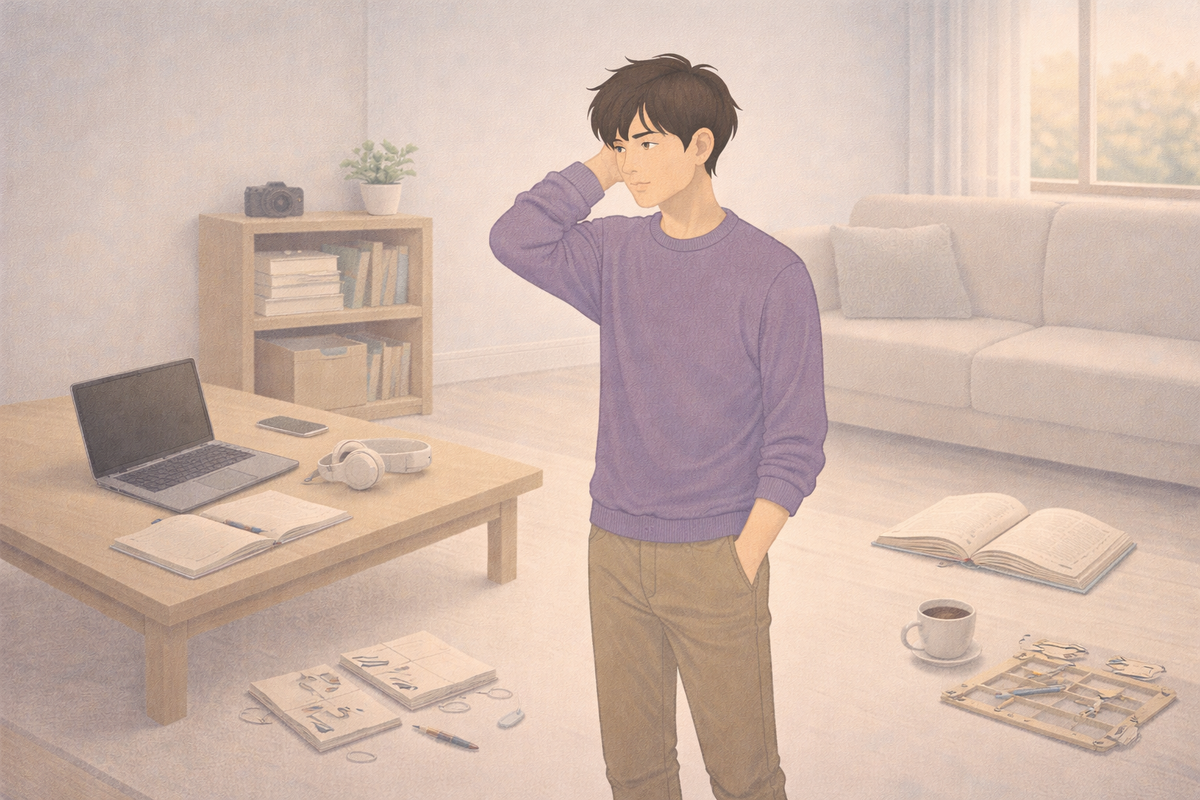Начал одно, потом второе, потом третье. В итоге ни одно не закрыто. Например, решил навести порядок: разобрал один ящик, отвлёкся на другой, потом вспомнил про старые документы, потом полез искать коробку. В итоге час прошёл, а ощущение — что ничего не сделал. Нет ощущения завершённости