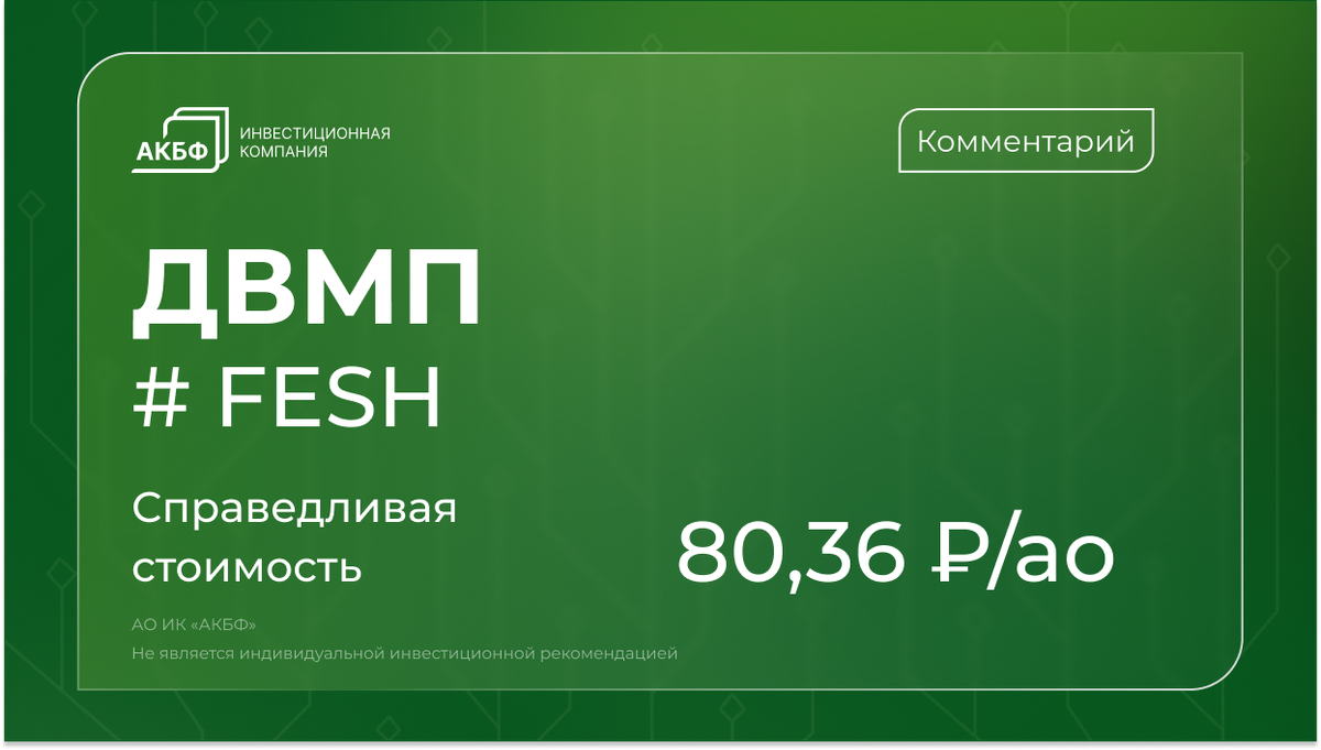 Акции ПАО «Дальневосточное морское пароходство» выросли на 40% с начала года, несмотря на снижение индекса Мосбиржи на 2%. Рост поддержан ожиданиями крупной сделки и масштабных инвестиций в логистику. Ключевым драйвером остается формирование совместного бизнеса с участием Росатома и DP World. Прогноз составлен 14.04.2026. ФАС согласовала сделку Росатома и DP World по созданию совместного предприятия. На 7 апреля она находилась на рассмотрении правительственной комиссии. В периметр СП войдет транспортная группа FESCO. Российская сторона получит 51%, DP World — 49%. Вклад Росатома — 92,5% акций ПАО «ДВМП». DP World внесет денежные средства, соответствующие рыночной стоимости пакета. Стороны планируют инвестиции в портовую инфраструктуру и флот ледового класса. Ожидаются также технологические вложения. С учетом этих факторов, в базовом сценарии оцениваем суммарные инвестиции в проекты FESCO в 2026–2032 гг. на уровне около 800 млрд руб. Развитие Северного морского пути ускоряется. К 2030 г